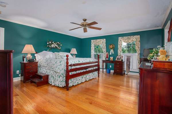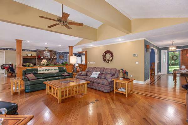 The property is designed to accommodate a variety of lifestyles, featuring 2 barns (new roof & gutters) w/multiple potential uses, such as equestrian, an indoor pool for year-round enjoyment & beautifully maintained grounds. All pastures are fenced & cross-fenced w/white vinyl fencing, offering added versatility. Ceiling fans are abundant throughout the home (except the den) pool room & outdoor areas. A gas dryer & Rinnai instant hot water system provide modern convenience, while both city water & a private 200-foot deep well ensure reliable water access. With ample parking spaces, this estate is thoughtfully designed for both comfort & functionality.