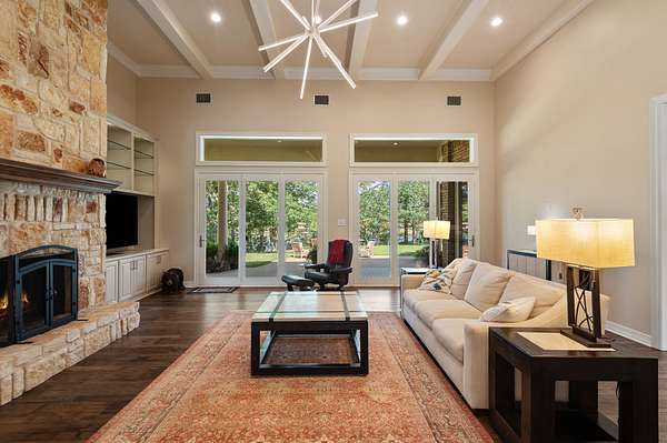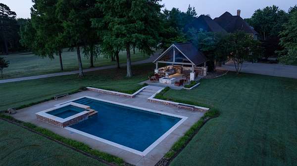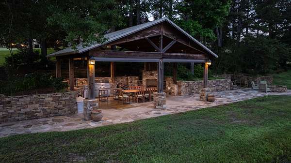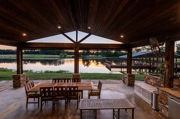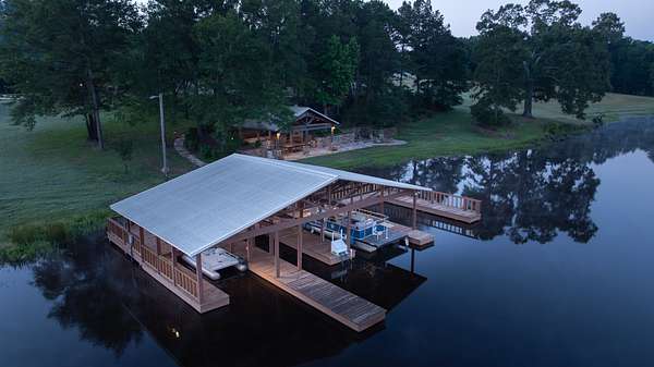 As you enter through the gated entrance, a winding road leads through stands of hardwoods and opens into a manicured hay and horse pasture. At the heart of the property, the main estate home sits lakefront with expansive views of a trophy bass-managed lake. The custom-built residence includes a saltwater pool, spa, fire pits, a double grill outdoor kitchen, and wraparound patios that make entertaining seamless.