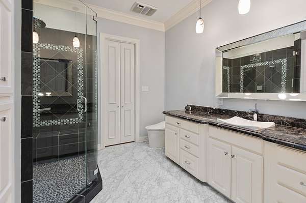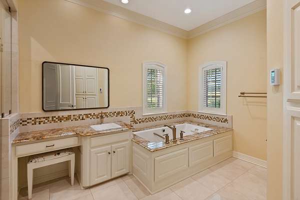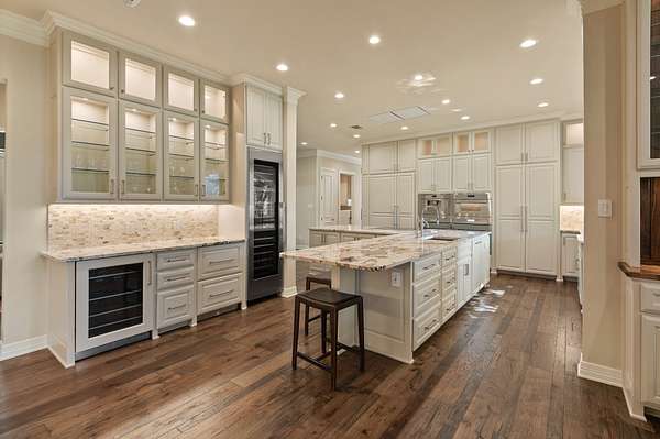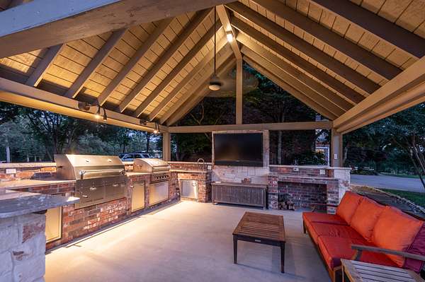 From the outdoor cabana by the lake--with its fireplace, kitchen, and sunshades--to the grand barn with a six-car garage, workshop, and indoor golf simulator, no detail has been overlooked.