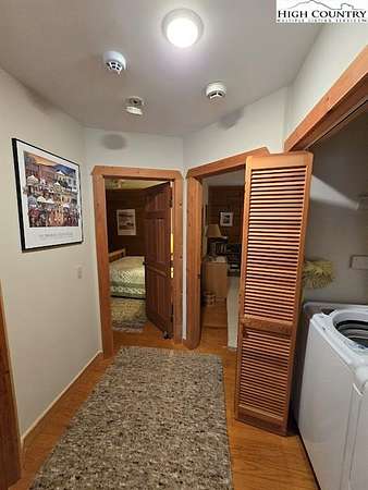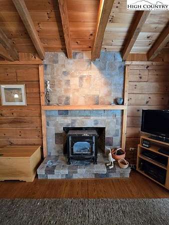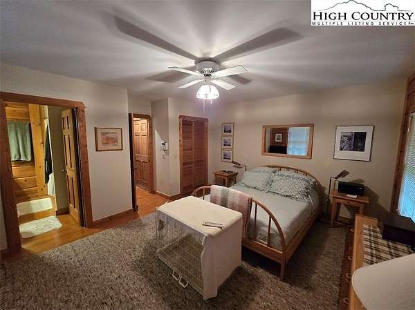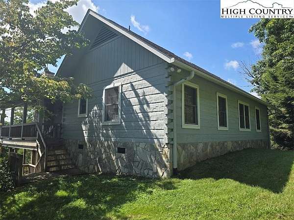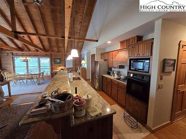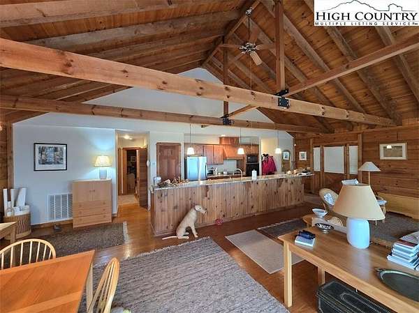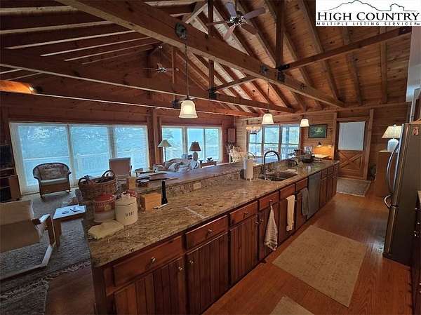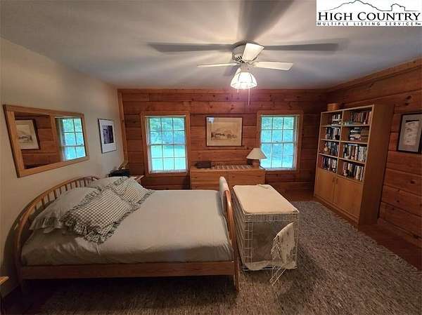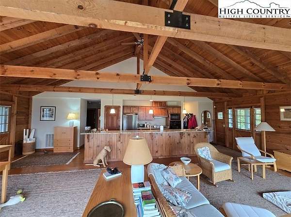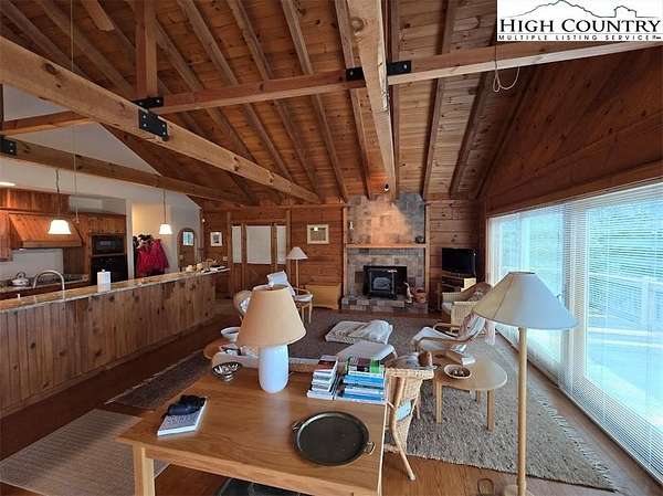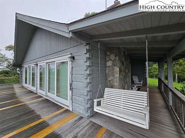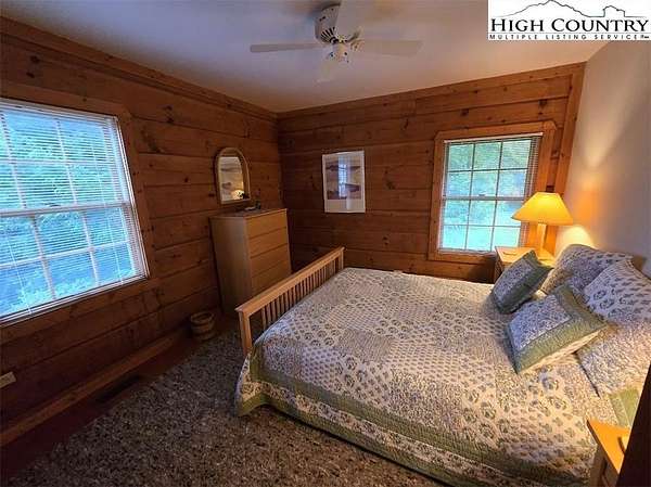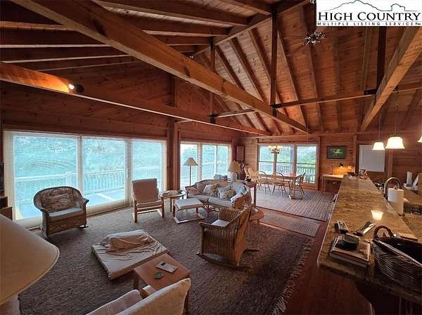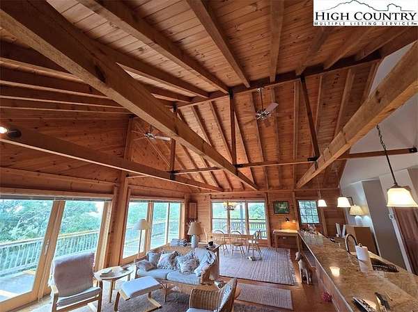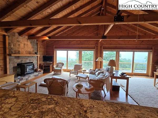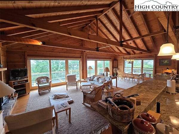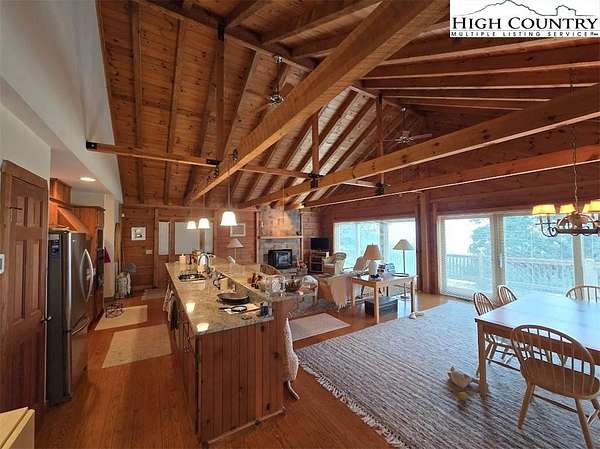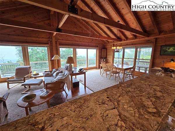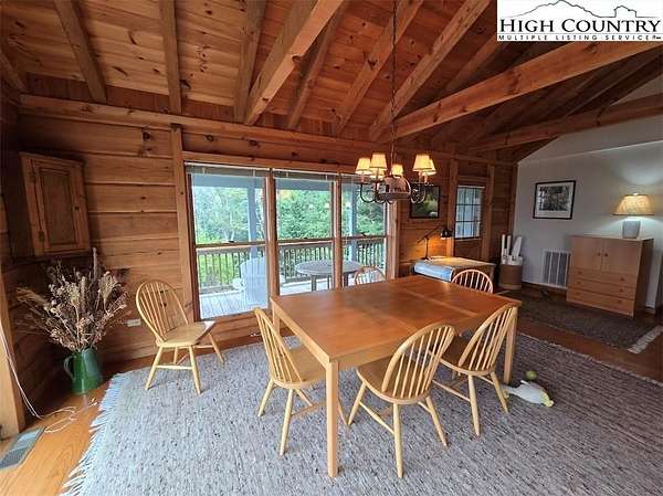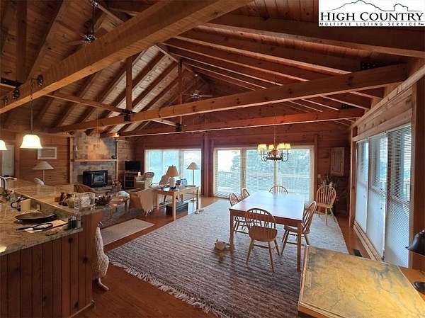 Est $4,070/moLog home in Barn Gate subdivision with 9+ acres, subdivision very well maintained with caretaker for mowing, roads, and snow removal. Has common area with pond and shelter. Located approx. 10 min from West Jefferson just out of Warrensville. Home has been maintained with recent work on deck. 2 bedrooms with bonus room and 2 baths on main level. Great room with open kitchen and large counter, dining area, living room with fireplace, Large doors access the deck and provide for the view of Phenix Mtn. Partial basement