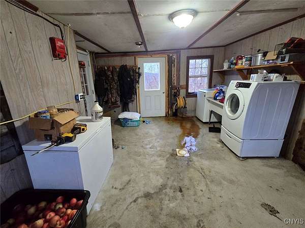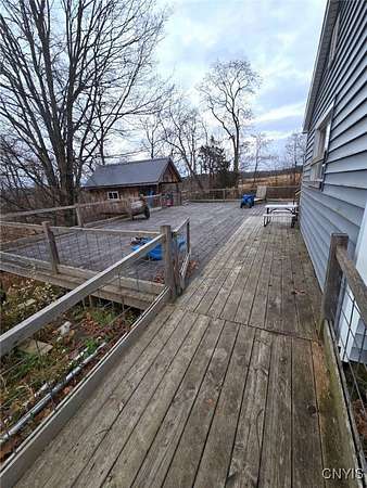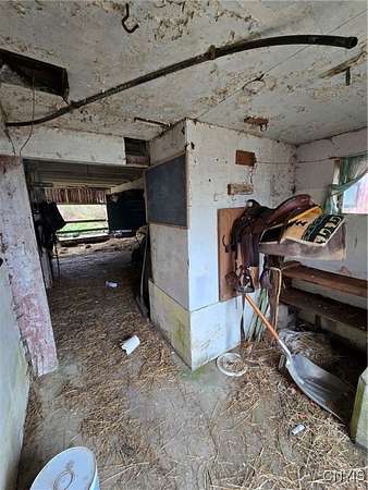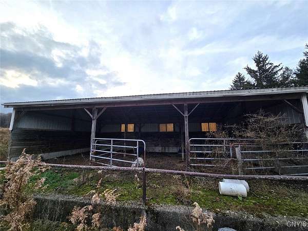 Welcome to this expansive homestead on 11.3 acres complete with a 45 x 52 shop, a large livestock barn, fenced pasture, and a 1,954 sq. ft. home featuring an upstairs apartment with its own private entrance located in Houghton NY, Allegany County. The main home offers 3 bedrooms, 2 full bathrooms, and 2 kitchens. The upstairs apartment includes 1 bedroom, 1 bathroom, a full kitchen, and its own entrance, ideal for guests, extended family, or rental income. It can also be accessed from the main level via an interior stairwell making it easy to incorporate into the primary living space if desired. An exterior deck wraps around the house with a treehouse that is located off the edge of the deck creating a fun play space for kids. The versatile shop is divided into two bays, one with a concrete floor and large overhead door, and the other with a dirt floor offering endless possibilities for vehicle maintenance, hobbies, or storage. The shop has electric providing ample power for lighting and tools, with plenty of workspace for projects of all sizes. The barn includes six horse stalls with additional room to expand or create pens for other animals. The property also features a unique, converted silo living space perfect as a recreational area, or as an additional rental opportunity.