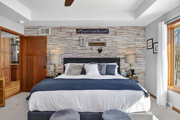 - Bath In Primary Bedroom, Cathedral Ceilings, Ceiling Fans, High Ceilings, Main Level Primary, Pantry, Sound System, Vaulted Ceilings, Walk In Closets, Wired For Sound