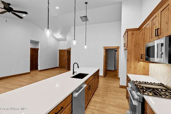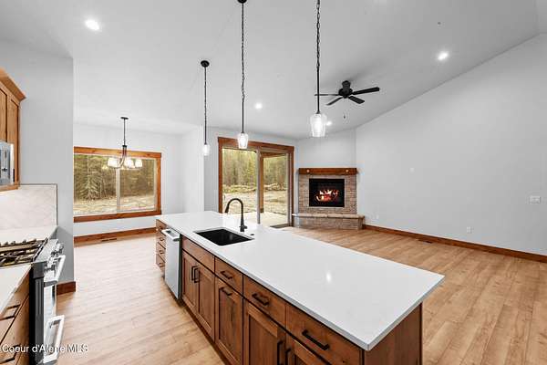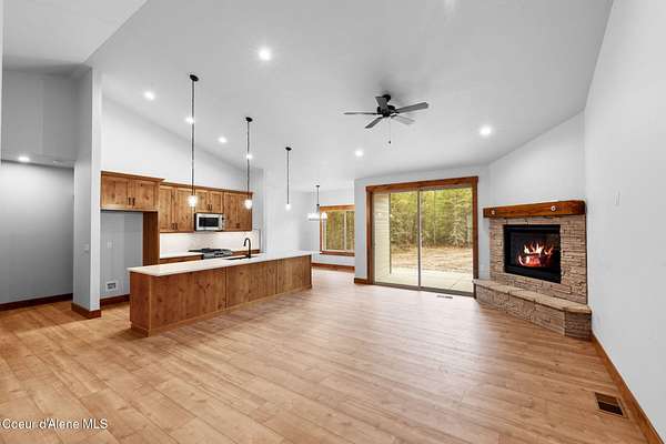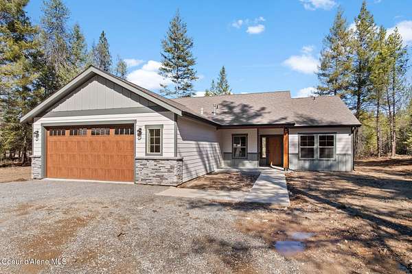 New construction Craftsman home on 3.23 acres in Oldtown, Idaho, located in Priest River Estates with no CC&Rs or HOA. Built by IdaDream Homes in 2026, this single-level 4-bedroom, 2-bath home offers 1,739 sq ft of efficient, open living with high-end finishes throughout. The thoughtfully designed floor plan includes a flexible fourth bedroom ideal for a home office. Interior features include quartz countertops, solid core wood doors, craftsman trim, LVP flooring, central air, heat pump, and a gas fireplace with stone surround. The kitchen is equipped with Professional stainless appliances, gas range, and a large island, perfect for everyday living and entertaining. Step outside to enjoy covered front and rear porches, territorial views, and a private, wooded setting at the end of a cul-de-sac. The property includes a 36'x40' fully finished shop, RV parking, paved access, and ample space for equipment, hobbies, or storage. Served by a private well, septic system, and propane, this property delivers the ideal blend of privacy, functionality, and North Idaho lifestyle, just minutes from Priest River and outdoor recreation.