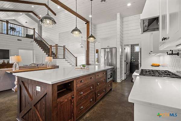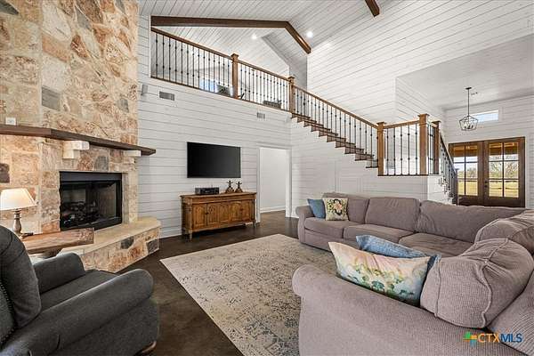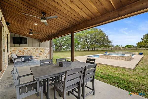 Tucked just off the main road in the highly sought-after and rarely available community of Moravia, this exceptional property offers the very best of country living. The thoughtfully designed ranch-style home features an open-concept layout with large windows and glass doors that bring the outdoors in. The home offers 3 bedrooms, 3 full baths, and 2 half baths, plus a fun loft overlooking the living area. The kitchen is a standout with a large island, 6-burner gas cooktop, pot filler, and more, complemented by a butler's pantry with sink, generous counter space, and additional storage. Shiplap accents add warmth throughout the main living areas, along with a floor-to-ceiling rock gas fireplace as a stunning focal point. The spacious primary suite includes his and hers walk-in closets, a garden tub, separate walk-in shower, double sink vanity, and separate built in makeup vanity . A dedicated office provides abundant storage and workspace. The spacious laundry room offers ample cabinets, counter space, and room for a freezer and refrigerator. Just off the garage entry, a convenient drop zone provides the perfect place for bags, shoes, and everyday essentials. Every detail considered throughout. Step outside to enjoy a resort-style backyard featuring a pool, hot tub, and plenty of space for relaxing or entertaining. The pasture is ideal for a few head of cattle, and the show barn is ready for storage or 4H/FFA projects. This is a must-see property with too many features to list!