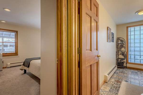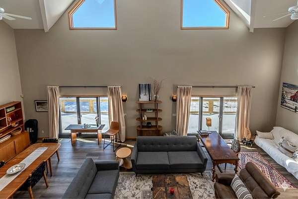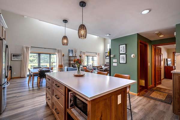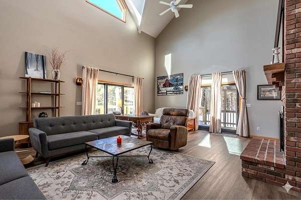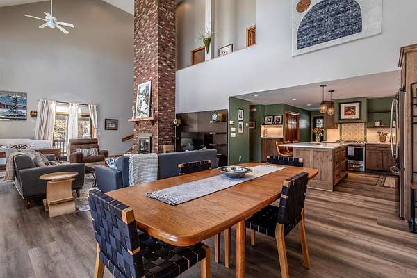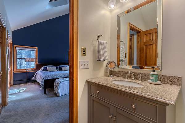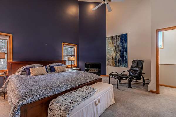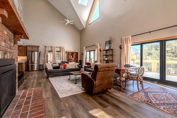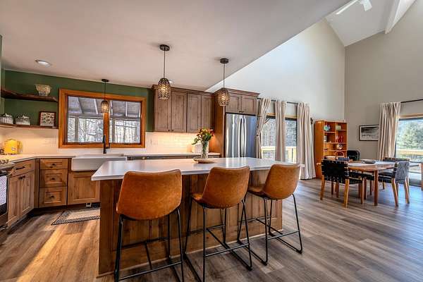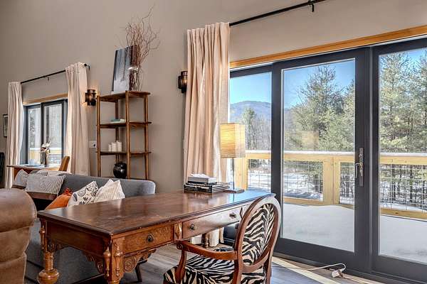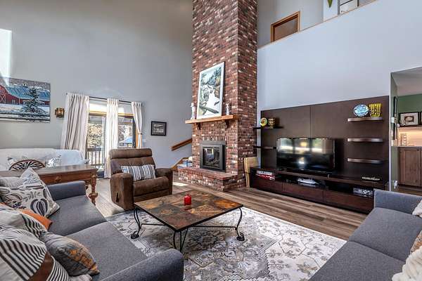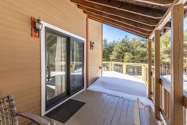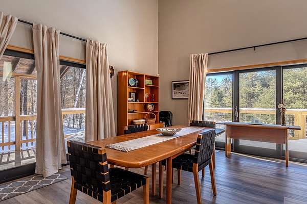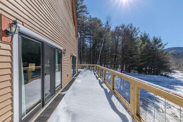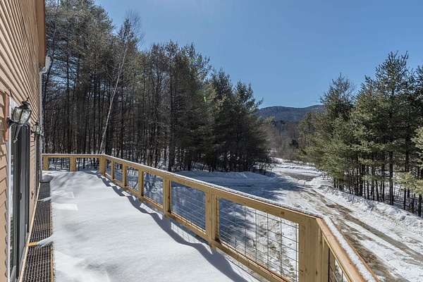 Nestled within a peaceful pine grove on 11.5 private acres between Stratton Mountain Resort and Mount Snow, this renovated 3-bedroom, 3-bathroom residence offers the perfect blend of secluded Vermont beauty and modern design. The heart of the home is a dramatic great room featuring 20+ foot soaring ceilings, skylights, and expansive windows that flood the space with natural light. On chilly winter days, enjoy the warmth and ambiance of the gas fireplace with its floor-to-ceiling brick chimney. The home was thoughtfully updated in 2024 with new sliding glass doors and new flooring throughout the kitchen, dining area, and great room. The kitchen was tastefully renovated in 2024, boasting sleek shaker cabinetry, a farmhouse apron sink, premium quartz countertops, and stainless appliances. All three bathrooms were updated in 2019. The home features three spacious bedrooms, including two ensuite retreats. The primary suite serves as a true sanctuary, anchored by a gas fireplace for ultimate relaxation. In addition to the open-concept living, the home includes a flexible bonus room and a lower-level walk-out family room—perfect for guests, entertaining, or a home office. Step outside to the large wrap-around deck, which features a modern wire railing system (updated in 2024) and covered portions for year-round enjoyment. Peace of mind comes standard with a brand-new heating system scheduled for installation! With an attached garage, a covered side entrance for easy grocery unloading, a garden shed, and direct backyard access for hiking through your own private woods, this serene property delivers on every level. Schedule your showing today!