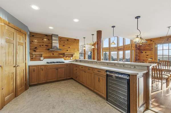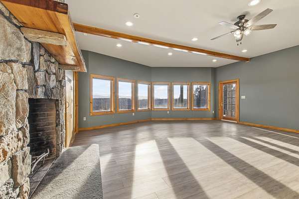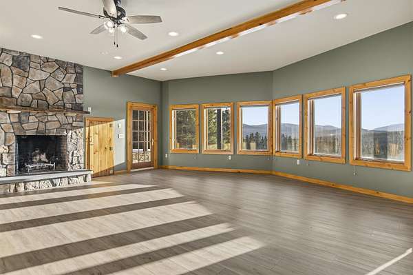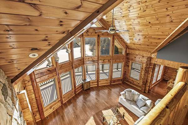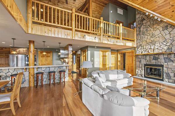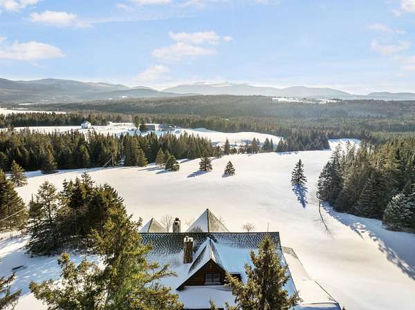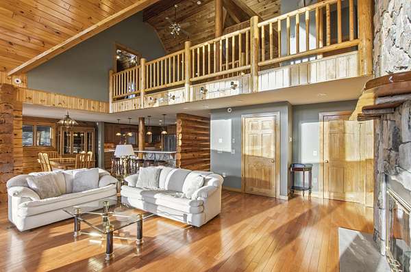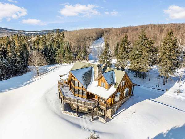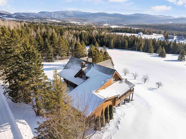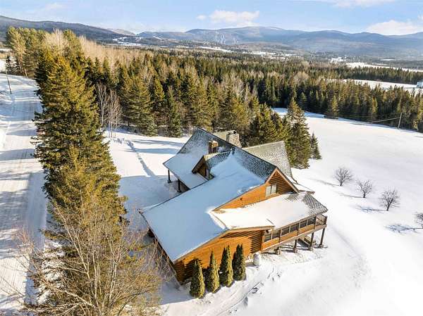 This exceptional, custom log home offers a refined North Country lifestyle combining timeless craftsmanship and breathtaking mountain views. The exquisite home offers soaring vaulted ceilings and floor to ceiling windows create a dramatic sense of space and light, while the elegant gas fireplace serves as a striking focal point in the grand living area--perfect for sophisticated entertaining or intimate evenings by the fire. A second wood burning fireplace in the lower-level family room as well. Thoughtfully designed for comfort and flow, the open-concept layout seamlessly connects indoor and outdoor living on every level of this home. Every room on these 3 floors of living area are perfectly appointed and so spacious. Incorporated with all the amazing details are 2 primary bedroom suites plus 3 other bedrooms, 5 baths total, loft with sitting area or office looking down onto the grand living space, and a family room in walk-out lower-level. Multiple expansive decks invite you to come out, relax and entertain against a backdrop of rolling fields, woods, and panoramic mountain scenery. The screened-in porch is another place to escape for a tranquil dinner while admiring spectacular sunsets. The attached garage connects to a wonderful entry into the house with a place to sit and remove the outdoor gear. A whole-house backup generator provides modern convenience and peace of mind. Privately set on more than 32 ACRES, this remarkable estate offers a rare sense of seclusion along with direct access to premier trail systems for miles of riding both ATV and snowmobiles. Diamond Pond's public access is also close by for boating, fishing and swimming for year-round recreation enjoyment. Located in Colebrook, just minutes from local amenities, this property represents an extraordinary opportunity to own a luxurious retreat where natural beauty and privacy converge in the heart of all the North Country has to offer.