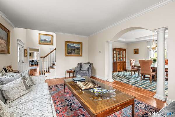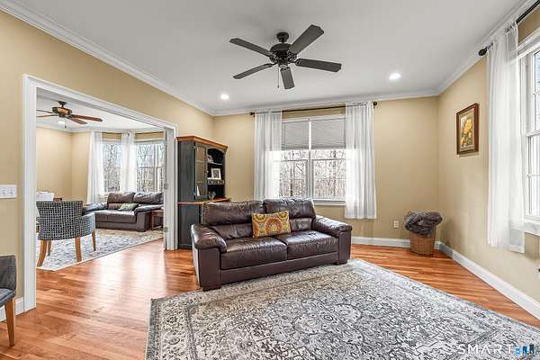 Custom-built in 2004 and meticulously maintained, this 2.18-acre home offers a true escape from the everyday. Surrounded by perennial gardens, stone walls, and specimen trees, the grounds are anchored by a stunning stone patio-your own private sanctuary for quiet mornings or lively entertaining. Inside, discover 3,669 square feet of sun-drenched living space featuring 11 rooms, 4 bedrooms, and 2.5 baths. The first floor boasts an effortless layout, including a private library/office, formal living and dining rooms, and a gourmet kitchen with new appliances. The kitchen's center island and breakfast area transition seamlessly into the family room, where a gas fireplace creates a cozy focal point. And did we mention the four-season sunroom, with views of the expansive lawn and patio? The second level is home to a luxurious primary suite featuring a spa-like bath with a soaking tub, oversized glass shower, and double walk-in closets. Three additional spacious bedrooms provide plenty of room for family or guests. Notably, the property features a 5-bedroom septic system, offering potential for future expansion. Added features include a 3-car garage, 9-foot ceilings, custom millwork, cooper roof overhangs, expansive unfinished basement (imagine the potential), and an irrigation system. Located across the street from Huntington State Park, you have access to over 1,000 acres of trails and scenic ponds. The home is also centrally located to NYC (car or train) and down county.