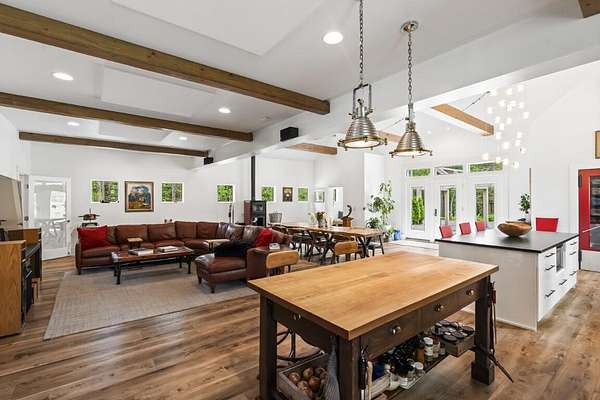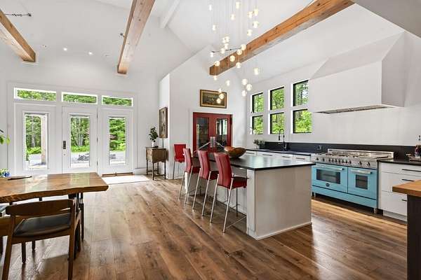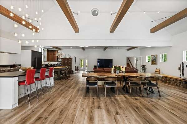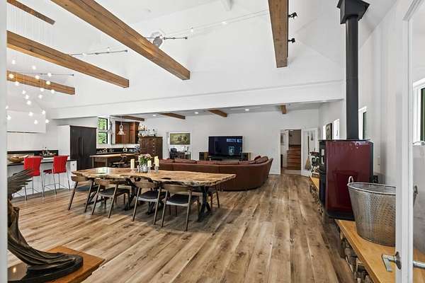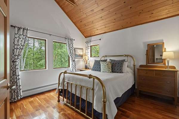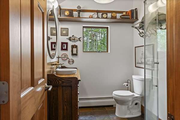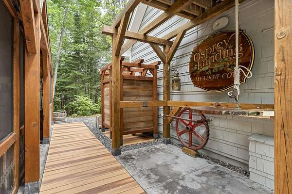 In the charming village of East Boothbay, this one-of-a-kind contemporary home offers 6.75 acres of natural beauty and 800 feet of frontage on a pristine 28-acre pond. An extensive renovation transformed this home into a warm, light-filled primary residence. Inside, vaulted ceilings with exposed beams frame open living spaces, anchored by a chef's kitchen designed for gatherings. The 3-bedroom, 2.5-bath layout includes an office that could easily serve as a first floor bedroom, or create additional guest quarters in the nearby garage. Thoughtful, custom details are throughout this house. Step outside and discover a true four-season paradise. The timber frame porch is a sanctuary that includes a living room with swing couch, kitchen and dining area that overlook a wildlife-rich meadow leading to the pond. Spend summer days paddling, casting a fishing line from shore, or sharing a sunset on the platform next to the firepit. Come winter, the frozen pond invites snowshoeing, skating, and more fireside evenings. Private yet just minutes to Boothbay Harbor's waterfront, dining, shops, marinas, and golfaEUR"this is a rare opportunity to own a Maine retreat that blends modern comfort with timeless natural beauty. Dock access available by association membership.