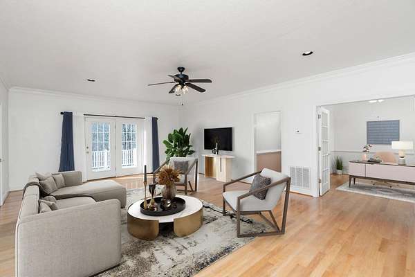 Custom built with forever in mind! This one-owner, all-brick home in Folly Mills Estates showcases craftsmanship at every turn-quoin corners, hardwood floors, 10-ft ceilings, crown molding, and custom cabinetry. The floor plan offers excellent flow with a private primary suite, an open family room, and a bright kitchen flooded with natural light and storage. An oversized attached garage plus a huge detached garage/workshop (28x40!) give endless possibilities for hobbies, toys, equipment, or studio space. A full basement provides room to expand or incredible storage. Set on 6+ private acres, this serene setting offers peace, wildlife, and space to breathe. A rare opportunity to own a true forever home!