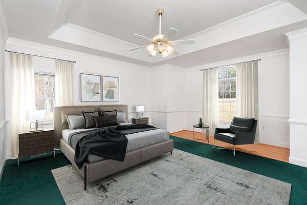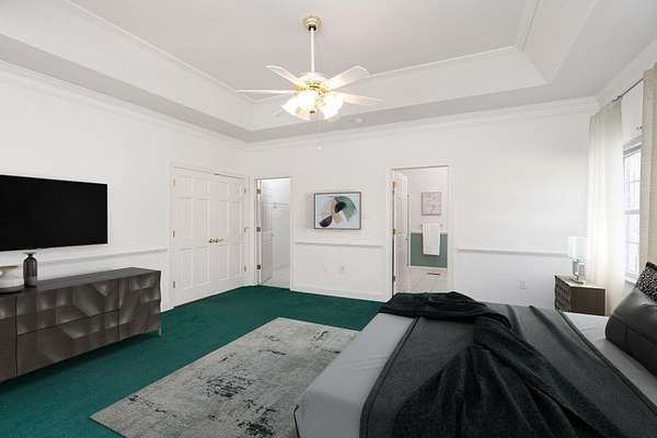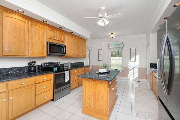 - Eat In Kitchen, Entrance Foyer, High Ceilings, Home Office, Kitchen Island, Primary Downstairs, Recessed Lighting, Tray Ceilings, Walk In Closets