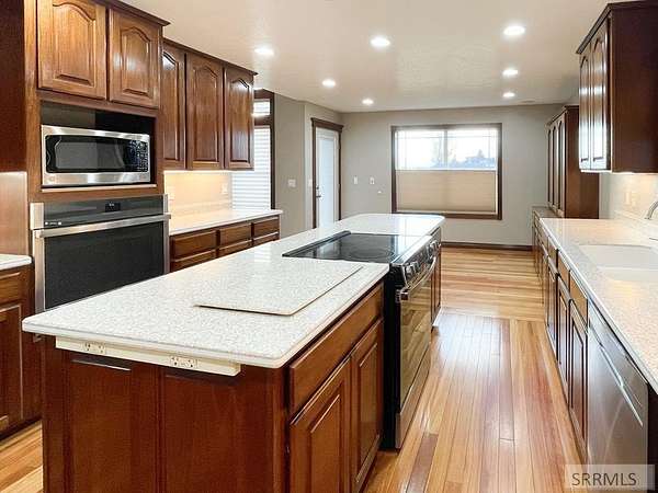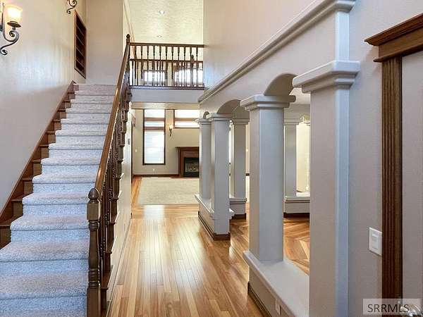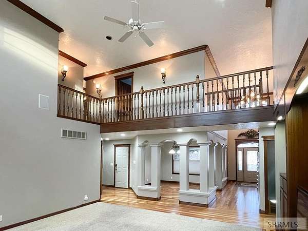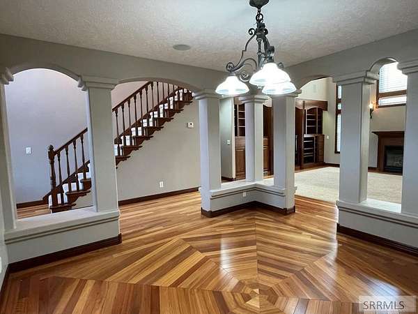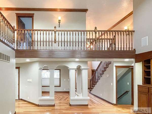 Stunning custom-designed home loaded with upgrades and thoughtful details throughout! The main level features beautiful lyptus wood flooring, a versatile living room/office, and a spacious family room with 17-ft ceilings, custom built-ins, gas fireplace, and open catwalk. A half bath leads to the primary suite with coved tray ceiling, new bath with double sinks, granite counters, soaker tub, walk-in shower, and two custom walk-in closets. The kitchen includes custom cabinets, stainless appliances, new built-in range, wall oven, microwave, and built-in china hutch. Access the new Trex deck from the kitchen or primary suite and enjoy the huge backyard with a cemented basketball court and space for a future shop. Main-level laundry offers a folding counter, sink, cabinetry, ironing board, and laundry chute. Upstairs features 4 bedrooms, 2 baths, and a bonus room over the 3-car garage. The fully finished basement includes 2 bedrooms, a bath, 3 storage rooms, large great room with pool table, kitchenette/bar, built-in desk, exercise room. Major mechanicals: 2 furnaces, 2 gas water heaters, AC, and whole-house intercom. The insulated, sheet-rocked garage has newer doors. Truly a must-see! Buyer to verify sq ft.