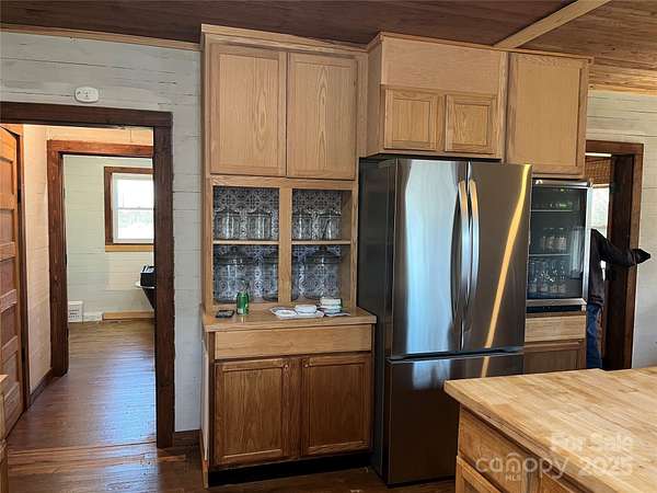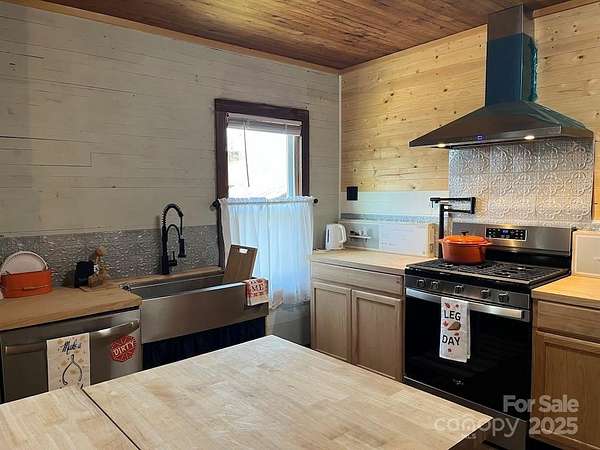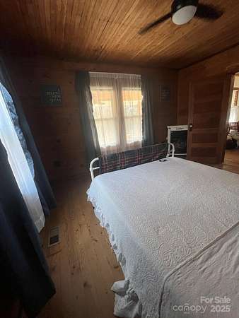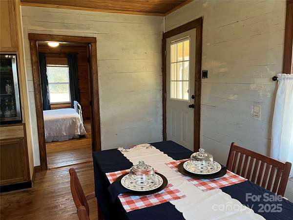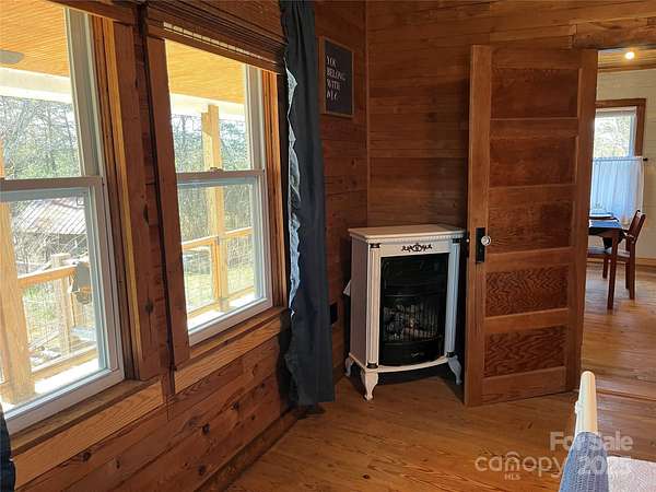 A must see, this beautifully restored property in the heart of the Brushy Mountains captures rustic charm with modern renovations. Gently sloping land with flat areas and a touch of wooded land offers a perfect slate to perfect your dream of a sustainable lifestyle. A 16 X 40 Hoop house ( plastic installed 2023) allows for year round gardening and resident hens offer up an additional perk to this lifestyle (13x13 Carport Frame - enclosed Chicken Run with Full-size Storm door & predator-proof roost). Enjoy your morning coffee from either one of two covered porches to welcome the suns' rising and setting. A double backed fireplace last used in 2020 adorns the living room. There are currently gas logs in the living room. One of the bedrooms has gas logs and one has an electric heater. 1 & 1/2 Baths show off with original tongue and groove pine ceilings, walls and floors. Throughout the home are original solid wood doors, antique hardware and even a clawfoot tub. Additional Structures on Property: 18 X 20 Block Base for Carport/Garage. 18 X 20 Metal sided barn with one 12 X 20 lean to. There is a 12 X 8 Shed/ well house that seller states is workable, but the home has been using county water. Also on property is a log House with additions & two circa 1800 rock chimneys. Mature Fruits on property include: Muscadine, Blackberry, Persimmon, Pear, Grape and Blueberry. Also included in sale is a 1989 Ford 1110 Tractor (Diesel) with 60" Mowing Deck, Cultivator, Blade & Utility Cart (annual maintenace completed & replaced Glow Plugs in 2024).