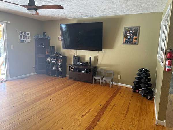 Est $1,736/moCountry living on approximately 4 acres, tucked among mature trees — a peaceful retreat with plenty of privacy. This well-kept 3-bedroom, 2-bath home features hardwood floors throughout, a generous kitchen/dining combo for family meals, a comfortable living room, and a dedicated office space. Step outside to a nice backyard patio ideal for relaxing or entertaining. Practical extras include a two-car garage and a detached shop for workspace or storage. Ideal for buyers seeking acreage, quiet, and room to roam. Schedule a showing today.
