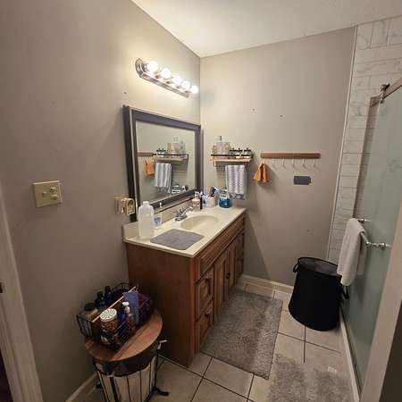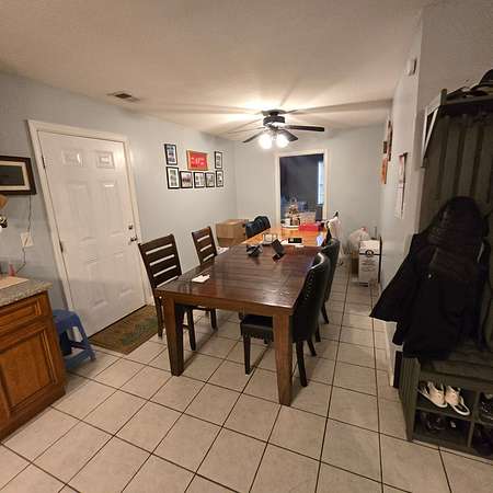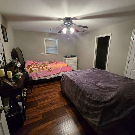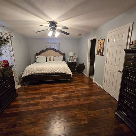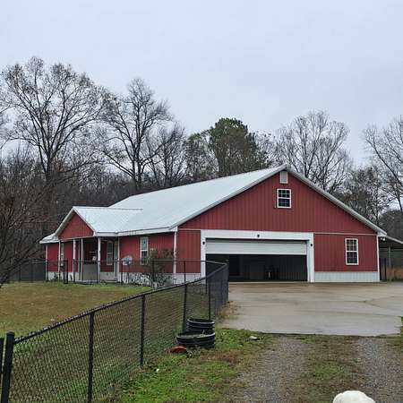 The home is a 2 bed/ 2 bath barndominium with storage above the garage.