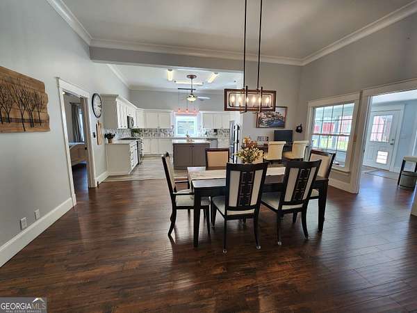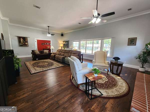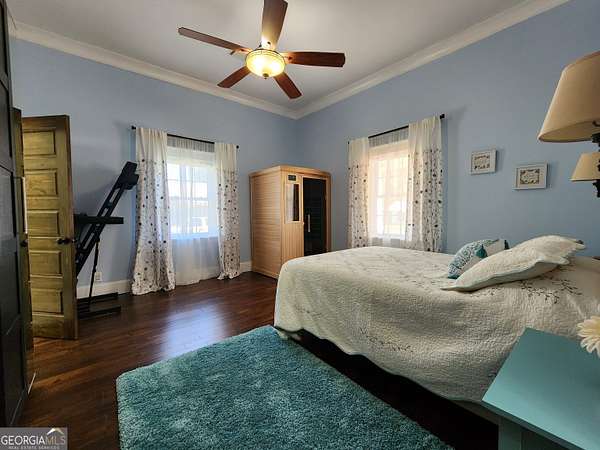 Nestled on 23.86 acres in the heart of Deepstep, GA, this stunning 2008-built estate offers the perfect blend of modern luxury and serene country living. The expansive 4-bedroom, 4.5-bathroom home features a thoughtful design with soaring 11 ft ceilings, creating an airy and grand atmosphere throughout. Each bedroom boasts its own en-suite bathroom, serviced by energy-efficient tankless hot water heaters for endless comfort. The upstairs features a luxurious bedroom suite with a sizable walk-in closet, separate walk-in shower, and indulgent soaking tub, complemented by two sitting areas and a versatile craft room and flex space. The heart of the home is its sprawling gourmet kitchen, complete with a large island, spacious pantry, and a garden window above the sink that floods the space with natural light. The inviting family room, highlighted by a large bay window with storage, offers picturesque views of Deepstep's charming landscape and features a cozy wood-burning fireplace, perfect for chilly evenings. A private sunroom provides a tranquil retreat for quiet moments. A huge mudroom with a laundry room and second pantry adds practicality. Just outside the mudroom is the attached 4-car garage, wired for an electric car charging station and boasting a solar-powered mini-split unit for climate-controlled comfort. Outside, the expansive grounds are a nature lover's paradise, teeming with countless deer and wildlife, and featuring a serene pond, established riding trails, a 42x34 metal workshop, and a 22x22 metal barn, perfect for projects or hobbies. A second 1-bedroom, 1-bath residence with a full kitchen, set up on its own power meter, offers guest accommodations or rental potential. The property also includes a greenhouse, covered hot tub area, and a backyard orchard with pecan, peach, apple, cherry, and fig trees, along with 6 mature blueberry bushes for farm-fresh delights. Enter through the side gate into your own private country haven, where endless possibilities await. This Deepstep gem is the ultimate forever home or weekend escape-schedule your showing today!