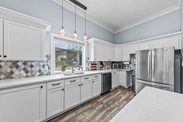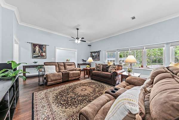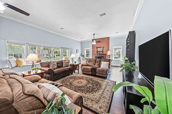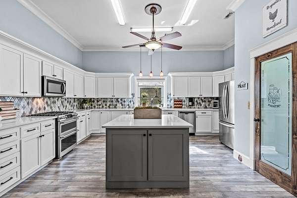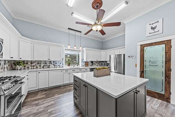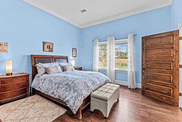 If you've been craving a slower pace and a little more space to breathe, this 4420 sf home & 23+ acre property might be exactly what's needed. Surrounded by woods with a stocked pond out back, it's the kind of property where outside is your favorite place to be. The front porch stretches across the entire home, and it's perfect for a swing, a cup of coffee, and a good book. Inside, you'll find a surprisingly spacious layout with four bedrooms, each with its own full bath and walk-in closet so everyone has their own space. There are actually two primary suites-one on the main floor, just off the kitchen, and one tucked upstairs for extra privacy, featuring a big walk-in closet and a huge ensuite bath. There's a large living room, a separate dining area, and a dream kitchen that's ready for everything from weeknight dinners to hosting friends and family. The home also has really great bonus spaces-a bright sunroom, a dedicated craft room, and even a cozy reading nook in the upstairs suite. Outside, there's even more to love including a guest house with its own living space, full kitchen, full bath, and a large upstairs area, making it perfect for guests, extended family, or even rental potential. The backyard is fully fenced for pets, chickens or small farm animals, but opens to the larger acreage, where you'll find a pond for fishing and plenty of room to roam or hunt. There's also a workshop, shed, chicken coop, and raised garden beds already in place. This one really is a must-see property-it just keeps going and feels even bigger and better in person than expected.