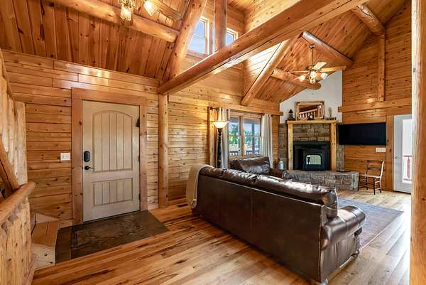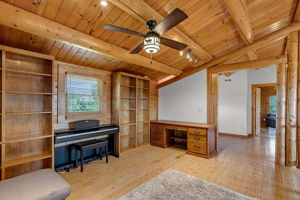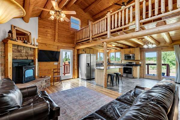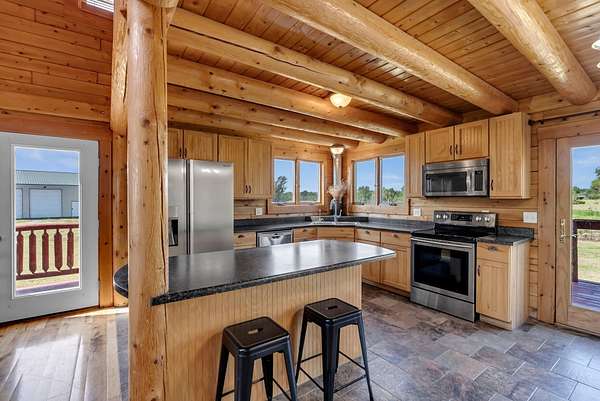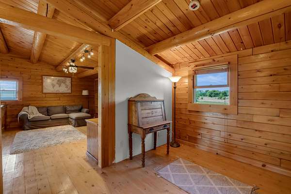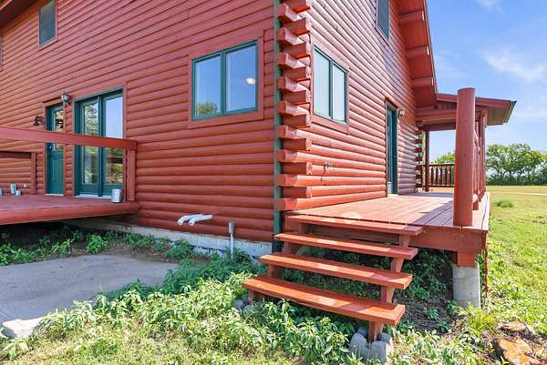 Step into a life less hurried, where the gentle rhythm of the country is your daily vibe. This property offers the peaceful solitude you crave, yet you can get to town in a jiffy. You have truly discovered the trifecta of peaceful country living! From the moment you turn into the drive, you'll be in awe. Custom-built log home, 40x50 all-steel frame garage/shop with 22?x40 loft, 12+ nature-filled acres. This home bursts with rustic charm, featuring a newly resealed and stained cedar-loop exterior and a wraparound porch-many of the planks recently replaced and stained to perfection. Inside you'll find hickory and spruce. The living room features a classic pellet stove, perfect for cozy evenings. The first of two master suites is on this level, complete with a tub/shower combo, walk-in closet, and a private patio door. Step out onto the north porch-your own little spot for a cup of coffee or tea to greet the day. The upper level offers a bright loft, flexible bonus space, and the second master suite with a shower and walk-in closet. The basement features a large family room-ready for movie nights-complete with a wet bar. You'll also find the third bedroom, the third bathroom, and a generous nook that could easily serve as an additional bedroom/walk-in closet. Brand-new carpet in the main floor master suite, on the basement stairs, and throughout the entire basement, making every step cozy. The land & The outbuildings are a homestead dream. The impressive shop is a craftsman's or hobbyist's paradise. Or convert part to a horse barn! It can store a 30' camper, plenty of height to add a car lift, features a fully operable half bath, and an additional room already sheetrocked and ready to be finished out (pre-wired for a mini-split!). Access is easy with two 12' tall doors on the north and one 7' door on the west. The pasture is fenced and includes a three-sided shed in the northewest corner. Wooden storage shed, and a large hen house with a chicken run (the current occupants can stay should you choose!). A separate fenced area awaits your large garden. And there are two barn cats ready to continue their stellar job of mousing, if you like. A picturesque (though usually dry) creek bed meanders through the northeast area of the property. If you've been looking to go off-grid, this home offers a wonderful start with its high-efficiency systems. HVAC: Hybrid heating system with a 15 SEER air source heat pump and a 94% efficiency propane furnace. Hybrid, electric high-efficiency water heater with Wi-Fi control. An interlock switch on the service panel with a generator hook-up for peace of mind. This retreat is perfectly situated just 10 miles south of Kellogg and Maize Rd. and just two miles east of Clearwater, a welcoming community offering a city pool, grocery store, feed store, multiple restaurants, and more. These country roads are waiting to bring you home.