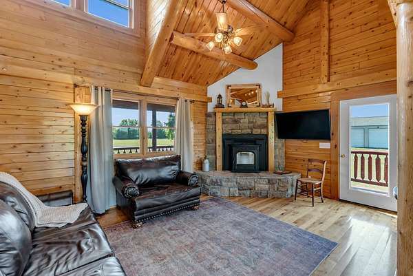 ?Where it's peaceful country living, a lot of tranquility, and Amazon delivers straight to your door. If life is telling you to step into a life less hurried, where the gentle rhythm of the country is your daily vibe, you owe it to yourself to make this home yours. From the moment you turn into the drive, you'll be in awe. Custom-built log home, 40x50 all-steel frame garage/shop with 22?x40 loft, 12+ nature-filled acres. This home bursts with rustic charm, featuring a newly resealed and stained cedar-loop exterior and a wraparound porch-many of the planks recently replaced and stained to perfection. Inside you'll find hickory and spruce. The living room features a classic pellet stove, perfect for cozy evenings. The first of two master suites is on this level, complete with a tub/shower combo, walk-in closet, and a private patio door. Step out onto the north porch-your own little spot for a cup of coffee or tea to greet the day. The upper level offers a bright loft, flexible bonus space, and the second master suite with a shower and walk-in closet. The basement features a large family room-ready for movie nights-complete with a wet bar. You'll also find the third bedroom, the third bathroom, and a generous nook that could easily serve as an additional bedroom/walk-in closet. Brand-new carpet in the main floor master suite, on the basement stairs, and throughout the entire basement, making every step cozy. The land & the outbuildings are a homestead dream. The impressive shop is a craftsman's or hobbyist's paradise. Or convert part to a horse barn! It can store a 30' camper, plenty of height to add a car lift, features a fully operable half bath, and an additional room already sheetrocked and ready to be finished out (pre-wired for a mini-split!). Access is easy with two 12' tall doors on the north and one 7' door on the west. The pasture is fenced and includes a three-sided shed in the northewest corner. Wooden storage shed, and a large hen house with a chicken run (the current occupants can stay should you choose!). A separate fenced area awaits your large garden. And there are two barn cats ready to continue their stellar job of mousing, if you like. A picturesque (though usually dry) creek bed meanders on the property. If you've been looking to go off-grid, this home offers a wonderful start with its high-efficiency systems. HVAC: Hybrid heating system with a 15 SEER air source heat pump and a 94% efficiency propane furnace. Hybrid, electric high-efficiency water heater with Wi-Fi control. An interlock switch on the service panel with a generator hook-up for peace of mind. This retreat is perfectly situated just 10 miles south of Kellogg and Maize Rd. and just two miles east of Clearwater, a welcoming community offering a city pool, grocery store, feed store, multiple restaurants, and more. This property offers the peaceful solitude you crave, yet you can get to town in a jiffy. These country roads are waiting to bring you home.