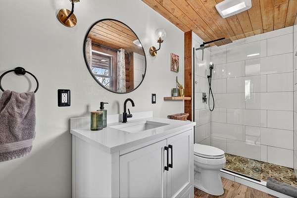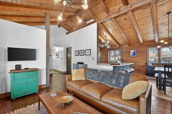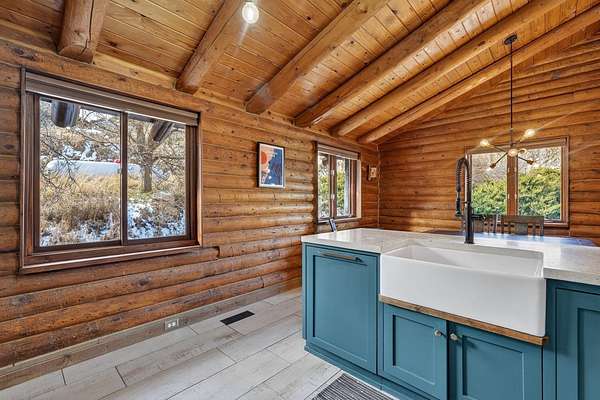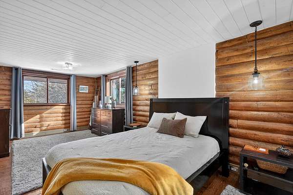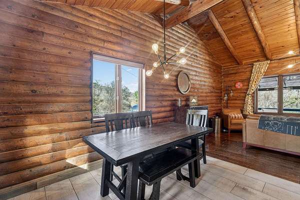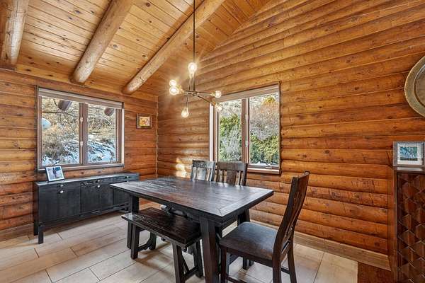 Experience the peace and tranquility of mountain living, where a creek runs through the property and wildlife abounds. Enjoy incredible hiking and exploring right out your back door on your own piece of Idaho heaven. This stunning 4 bedroom, 2.5 bathroom home has been fully renovated from top to bottom and offers the perfect private retreat. Recent exterior upgrades include a new roof and freshly stained and chinked exterior, adding both beauty and long-term durability. From the covered front porch, ideal for quiet mornings or relaxing evenings with a good book, step inside to a beautiful great room with vaulted ceilings and an open, airy feel. The chef’s kitchen features smoky quarts concrete countertops, stainless steel appliances, a farm sink, custom cabinetry, a spacious dining area, and a breakfast bar with seating for four. The bright living room is filled with natural light from large windows that showcase breathtaking views in every direction. The main level primary suite is a dreamy escape with a sitting area, access to a private wraparound deck, a walk-in closet with extra storage, and a spa-like bathroom with custom tile and a European glass step-in shower. An additional main level bedroom and beautifully upgraded full bathroom offer a custom vanity, tile work, built-in shelving, a soaking tub, and a separate shower—creating the same relaxing spa-inspired feel. The walk-out daylight basement offers endless possibilities with a versatile layout designed to fit your lifestyle. Enjoy a spacious family room with a fireplace and abundant natural light, two additional bedrooms, a half bathroom, and an expansive laundry area with extra storage and craft space. The property also features an extra-deep double car garage with added shop space, complete with a full heating / cooling system. A sliding glass door at the back of the shop brings in natural light and adds excellent versatility—perfect for an in-home gym, workshop, or additional recreation space.