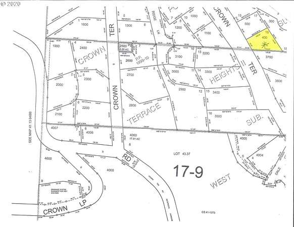 Est $675/moBring your plans and build your dream home on the top of Crown Terrace with gorgeous views of Mount Emily and the rolling hillside. View the Pacific Ocean and city lights on your drive into town. Water, Sewer and Electric available to be be connected for SDC fees. Come take a look at this land today!