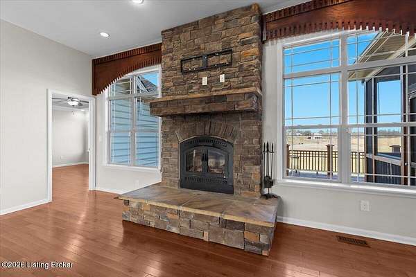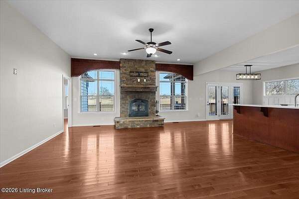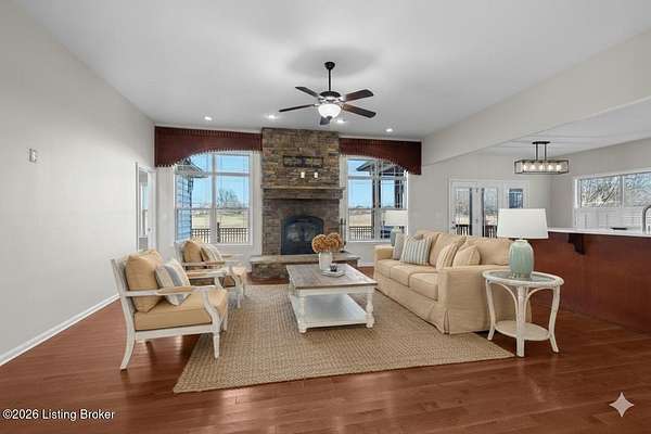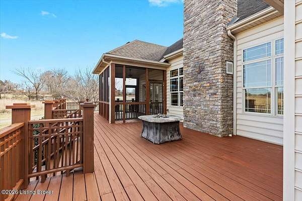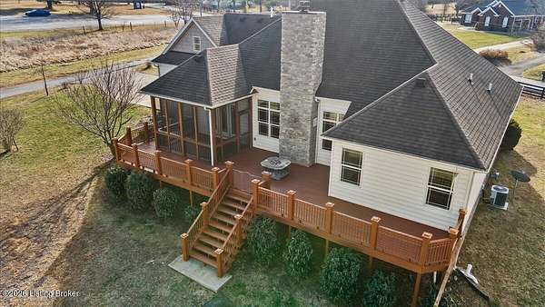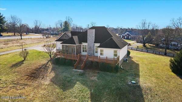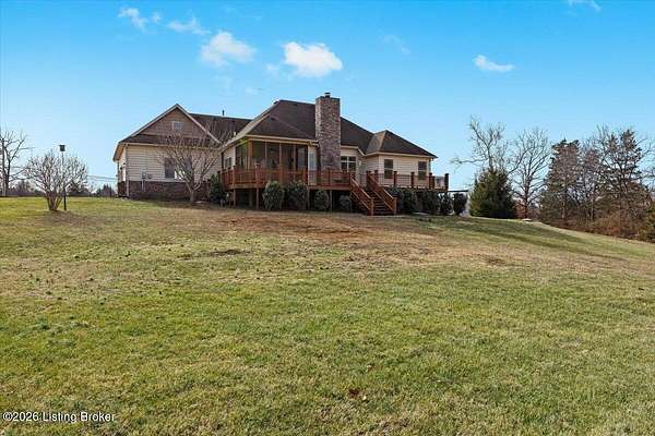 Beautifully situated on 6.02 acres with a peaceful pond, this traditional ranch home offers refined living with timeless appeal. The beautiful exterior provides classic curb appeal, while the expansive setting offers privacy and scenic views. Once you step inside the front door into the spacious foyer, you will feel the luxurious yet comfortable feel of the home. The large, inviting family room with stone fireplace with flanking windows has the wow factor you have been searching for in a home. The well-appointed kitchen is designed to impress, featuring new quartzite countertops, stainless steel appliances, and an abundance of cabinetry and countertop space-perfect for both everyday living and entertaining. In addition, the main level features a spacious primary bedroom with a private en suite bathroom, two additional bedrooms, and a full bath. Upstairs, a large flex space with a closet provides excellent versatility for a bonus room, home office, or additional living area. Outdoor living is exceptional with a screened porch and a large deck, ideal for relaxing or hosting guests while overlooking the serene acreage and pond. This property seamlessly combines classic style, thoughtful updates, and a beautiful natural setting.