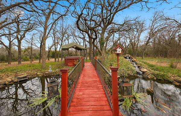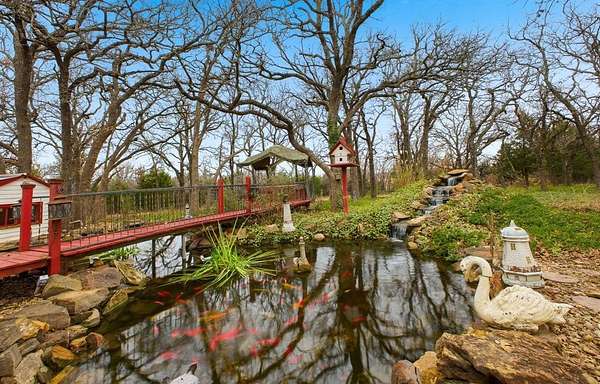 Welcome to your own peaceful country getaway in Ranchwood Oaks! This 3-bed, 2-bath home sits on a little over 5 beautiful acres, giving you plenty of room to breathe, spread out, and enjoy the quiet pace of rural living. As you explore the property, you'll find a charming bridge leading to a small pond area underneath, brimming with huge, beautiful Koi fish, surrounded by lush greenery that is every gardener's delight! There's also a small shed that would make a perfect doggy dream home, along with a large carport that doubles as a garage space. Only 30 minutes to tinker, and 40 minutes to downtown Oklahoma City, with quick access to OK-66, OK-102, and I-40, you get the best of both worlds: quiet country living with an easy drive to town. If you're looking for a place where you can relax, grow, and truly make a haven of your own, this is the home for you!