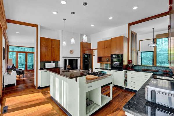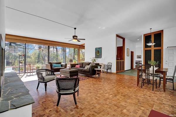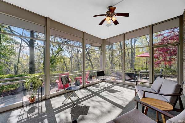Discover a rare opportunity to own a stunning mid-century modern retreat set on over 4 private acres in Columbus! Located at 9806 Raintree Dr N, this one-of-a-kind property seamlessly blends timeless architecture with serene natural surroundings. True to mid-century design, the home showcases clean lines, expansive windows, and an open, flowing layout that brings the outdoors in. Natural light pours into the main living spaces, highlighting the home’s character and creating a warm, inviting atmosphere. Multiple fireplaces serve as striking focal points throughout the home, adding both architectural charm and cozy gathering spaces perfect for Indiana seasons. The spacious living and dining areas are ideal for entertaining, while the kitchen offers functionality and style with a touch of connection to the main living spaces. The bedrooms provide comfortable, private retreats, including a relaxing primary suite, all thoughtfully designed with mid-century character in mind. Step outside and experience a true highlight of this property—over 4 acres of peaceful, wooded surroundings. Whether you’re enjoying your morning coffee by the fire, hosting gatherings, or simply taking in the beauty of nature, this expansive setting offers unmatched privacy and endless possibilities. Distinctive mid-century charm in a private, tranquil setting—all within close proximity to Columbus amenities.