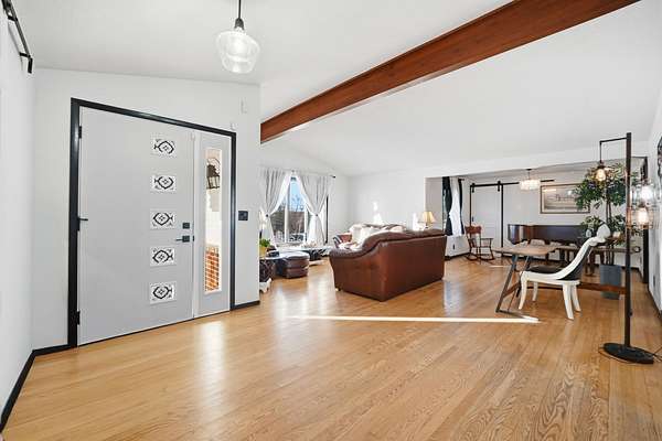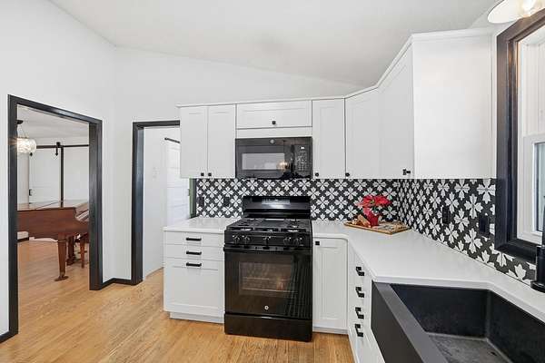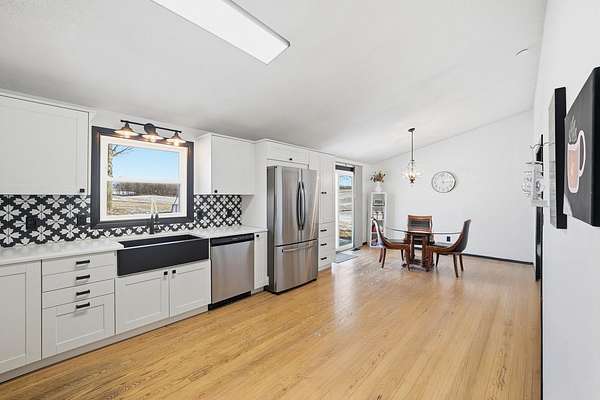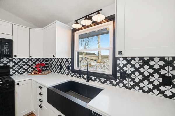 This beautifully updated 3-bedroom, 2-bath home offers fresh paint throughout, brand-new doors, and modern lighting in every room, creating a bright and cohesive living space. The spacious, fully renovated kitchen is a standout, featuring new soft-close cabinetry, sleek counter tops, a stylish tile back splash, new gas stove and built-in microwave, deep farmhouse sink, and newer stainless steel refrigerator and dishwasher-ideal for both daily living and entertaining. Both bathrooms have been thoughtfully updated with new tile and contemporary vanities. The hall bath offers a large soaking tub and the primary suite provides a true retreat with a spa-like shower system designed for relaxation. A full basement offers excellent potential for an additional bedroom or flexible living space to suit your needs. Situated on a large lot perfect for all activities, the property also includes a new garage door and opener. Enjoy the best of both worlds-peaceful, quiet living in a farm-like setting, while remaining conveniently close to larger towns offering shopping, dining, and all the amenities you need. So much NEW in this home to love and make yours!