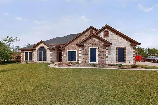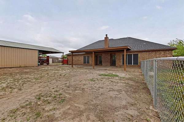 Perfect blend of tranquility and space with this ranch-style brick home, nestled on over 5 acres of fully fenced land! The home offers five bedrooms and three bathrooms. The interior features a functional layout including a dedicated office space, a great family room, and a large laundry room with ample storage. Recent updates to the residence include renovated bathrooms and a kitchen with quartz countertops and tile backsplash. Updated appliances, including a newer stove, Fresh interior paint, newer exterior light fixtures, and an enlarged rear patio. The property includes a 30x40 workshop equipped with water and electricity. The property also features a variety of fruit trees—including donut peach, plum, pear, regular peach, and Japanese apple—as well as grape vines. Additionally, the livestock on the property, including chickens, turkeys, and sheep, may be conveyed to the new owners, depending on the terms of the offer. This lovely home perfectly combines form and function, offering a serene sanctuary with ample space to meet all your lifestyle needs. This residence is set on 5+ acres that promise privacy and endless possibilities.