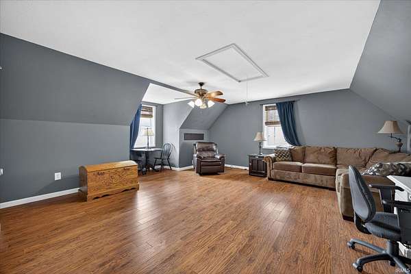 Welcome to your own private retreat on nearly 9 acres! This spacious 3,900+ sq ft property offers a beautiful blend of open space, natural surroundings, and thoughtful updates—perfect for those seeking room to spread out both inside and out. The main & upper levels feature 4 spacious bedrooms and 2 full bathrooms, along with updated kitchen and bath spaces, newer appliances, fresh paint, and warm touches like shiplap accents and a cozy fireplace that create an inviting atmosphere throughout. The kitchen showcases butcher block countertops, adding both function and character. Downstairs, you’ll find two finished rooms that offer incredible flexibility—ideal for a home office, hobby area, fitness space, or additional living needs, as well as an additional full bathroom. Step outside and enjoy the scenic land, complete with wooded trails for exploring, outdoor recreation, or simply taking in the peaceful surroundings. A detached Graber-built 2-car garage provides ample space for vehicles, storage, or projects. All of this, tucked into a serene setting while still being just minutes from town—offering a convenient balance of accessibility and privacy. Five mins from Spencer & grocery/shopping.
