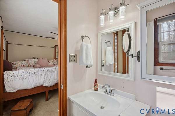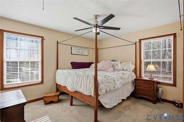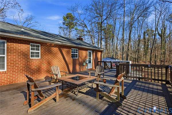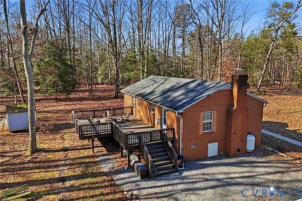Solid brick ranch set on a level 2.3 acre lot with county approval in place to subdivide for an additional single-family home. This 3 bedroom, 2 full bath charmer offers comfortable one-level living with ceramic tile floors in both bathrooms and a spacious primary suite featuring an en-suite bath updated in 2023. The fireplace was converted to propane gas in 2023, and major systems have been thoughtfully updated, including a new HVAC system (2025), upgraded artesian well (2025), water heater (2020), and a septic system serviced in 2023. An oversized rear deck extends the living space outdoors, and two storage sheds provide added functionality. Just a short walk to the Virginia Capital Trail, this property offers a rare blend of privacy, recreation, and future potential.