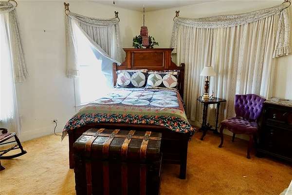 The first floor includes two bedrooms. The smaller bedroom, had been used as an office, is conveniently located off the dining area. The second bedroom is more spacious and offers ample closet space. Upstairs, the versatile second-story space is currently used as a third bedroom but offers endless possibilities -- guest quarters, game room, hobby space, or office area.