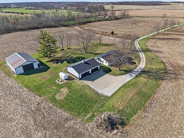 Beautiful private country setting located just East of Marion, close to Eastbrook High School. The fire pit area with strung Edison lights will surely become a favorite spot to catch incredible sunrise and sunset views. This sprawled out ranch features split bedroom concept, 2 full baths, oversized laundry, 2 living/family or dining spaces and spacious kitchen. Newly updated all throughout! Heat pump and AC, roof, front porch addition and washer and dryer new in 2021. Storm doors, tankless water heater, septic mound system installed new in 2023. Kitchen appliances installed in 2024: refrigerator, range and microwave. This property also features a brand new fully finished, heated 4 car detached garage built in 2025. Equipped with two 8x16 insulated doors, concrete floors, 16' workbench, all LED lights throughout and is wired for a generator (generator not included). There is also a 54x36 pole barn for plenty of storage. THIS IS A MUST SEE AND MOVE IN READY!