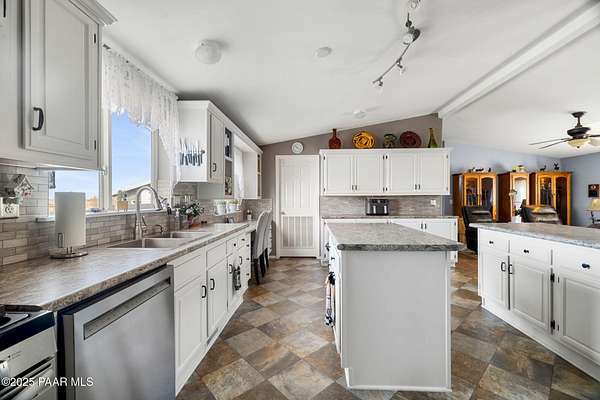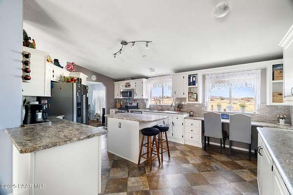The GOOD LIFE is calling! Located in the highly desirable Antelope Meadows subdivision, this home offers space, privacy, and stunning views.Built in 1999, this beautifully maintained 3-bedroom, 2-bath home blends comfort, functionality, and unforgettable views. The property is fully landscaped and framed by a charming ranch-style fence, creating instant curb appeal and a true sense of space. Step out back onto the recently paved patio and take in breathtaking views of Granite Mountain--perfect for morning coffee or sunset evenings.Inside, the home features a bright, white kitchen remodeled just four years ago, offering a clean, timeless aesthetic and a welcoming hub for everyday living and entertaining. A cozy double-sided fireplace adds warmth and character, connecting living spaces with ease and ambiance.For those needing room for toys, tools, or hobbies, this property truly shines: a massive 1,440-square-foot RV garage pairs with a separate two-car garage, providing exceptional storage and flexibility. The home is serviced by a fantastic well with strong production, offering reliability and peace of mind.This is a rare opportunity to own a thoughtfully designed home with incredible outdoor living, stunning mountain views, and unmatched garage space--all in one beautiful package.