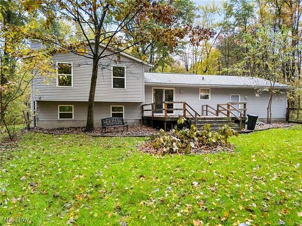 WOW! 3.5 PRIVATE ACRES NEAR BERLIN LAKE! This property offers comfort, space, and privacy on 3.5 picturesque acres. Surrounded by mature trees, this property offers the perfect blend of privacy and space to enjoy nature! The home's thoughtful layout provides comfortable living areas with plenty of natural light throughout. In addition to a large sized living room you'll also find a warm and welcoming family room featuring a cozy fireplace. The spacious kitchen comes complete with stainless steel appliances. Walk outside from the dining area and you'll love the fenced-in area near the house - perfect for pets, a garden, or outdoor entertaining. Upgrades: 2023-Remodeled kitchen including countertops, sink, hardware, lighting 2024: Remodeled bathroom with new walk-in shower. 2025: Freshly painted throughout and replaced front steps on porch Newer flooring on upper and lower floors. There is a fully plumbed second bath area in lower level.