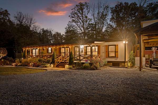 Welcome to 9812 Snow Hill Road, one of Ooltewah's most desirable streets. As you make your way down the long private driveway, you'll pass the well-kept mailbox, lush greenery, and manicured landscaping that immediately set the tone for what's to come. The property truly shines at dusk, when the landscape lighting softly illuminates the pathways, trees, and yard, creating an inviting glow that feels like home before you even step inside.