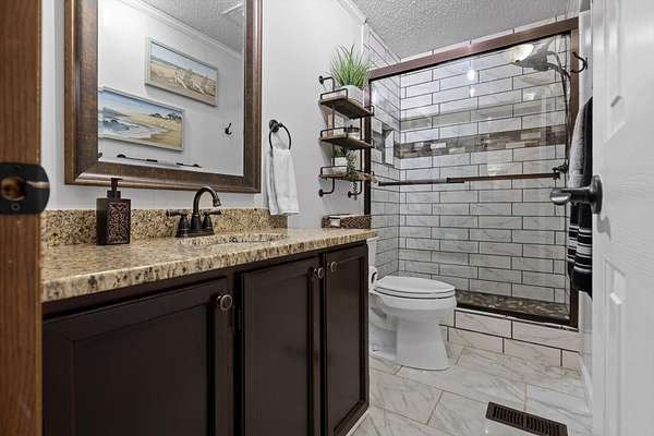 Step inside and you'll be greeted by a modern accent wall and updated fixtures that give the home a fresh, welcoming feel. The bathrooms have been beautifully remodeled with custom tile showers and warm finishes, making each space both comfortable and elegant.
