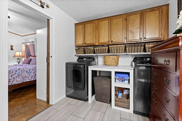 If you need extra room, the professionally finished storage area above the carport is perfect for seasonal items, hobbies, or additional workspace.