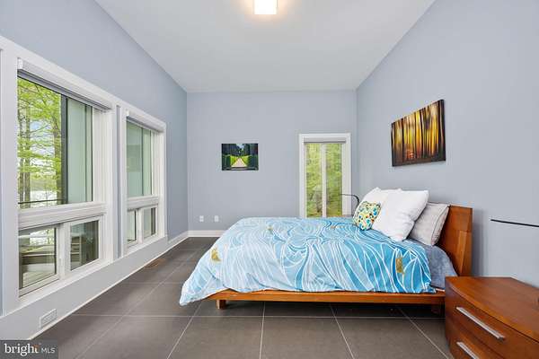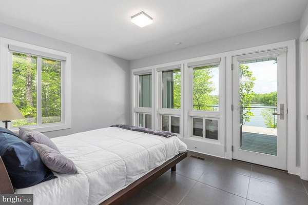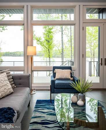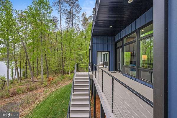 Luxury Waterfront Living - Custom-Built Modern Home on Nearly 3 Acres shown by appointment. Discover the epitome of luxury in this stunning custom-built modern home, perfectly situated on 2.77 private acres along the serene banks of Hunting Run Reservoir. Nestled in a quaint and quiet community, this one-of-a-kind residence offers breathtaking water views from nearly every room, blending modern design with nature's tranquility. The home is bordered by county parkland on either side as well as the opposite side of the lake creating a completely private setting. A custom concrete and stone walkway accented by three crepe myrtles guides you to the covered entrance and striking front door. Upon entering you are met with breathtaking water views from the great room at the heart of the home. The open-concept design maximizes both space and natural light with 12 ft ceilings and walls of oversized Marvin windows overlooking the water. Incorporated into this magnificent space is a chef's kitchen featuring a 36" gas Wolf range & vent hood, sleek soft-closing cabinetry, elegant granite counters and a 15 ft island - perfect for entertaining. A spacious dining area can accommodate 8 or more while the living area with gas fireplace makes for a comfort zone you won't want to leave. French doors lead to an enormous covered deck with multiple spaces to enjoy outdoor, waterfront living. A powder room for guests is conveniently tucked away from the living area and the side-by-side washer / dryer is positioned off the hallway to the 2-car garage. The main-level primary suite is a private retreat, boasting 10 ft ceilings, waterfront views, a spa-like bath with a soaking tub and separate shower, along with a meticulously designed walk-in closet. Step directly outside to the deck overlooking the water from the primary bedroom for a breath of fresh air to start your day. Opposite the owner's suite, on the other side of the great room, you'll find two additional bedrooms that share a full bathroom, plus a convenient home office. One guest bedroom faces the water with direct access to the full-length deck while the other is situated at the front of the home allowing for no shared walls between bedrooms. And, while over 2,000 sq ft of indoor and outdoor living can be enjoyed on one level, the walk-out basement provides even more value and possibilities. The lower-level flex room works great as a home gym, rec room or home theater, but could also serve as 4th guest room. A large mechanical room provides easily accessible storage while the additional unfinished space provides more possibilities for customization. The walk-out basement also has a screened porch for yet another outdoor living space overlooking the water. With approximately 200 feet of water frontage, this property is a haven for outdoor enthusiasts, offering endless opportunities on the water. Canoeing, fishing and stand-up paddle boarding are just a few of the activities out your back door. Tucked away on nearly 3 acres, this home offers unparalleled privacy while still being conveniently located. A recent addition of a fenced yard is perfect for your 4-legged friends. A spacious two-car garage and an extended driveway accommodating up to five additional vehicles provide ample parking for guests. Built with durability and style in mind, the exterior features fiber cement Hardie plank siding and a unique PVC roof, ensuring longevity and low maintenance. Other smart features include an electrical design that is generator ready with an easy plug-in at the garage. 9813 Chessmans Court offers an extraordinary opportunity to own a home that seamlessly combines luxury, modern craftsmanship, and ultimate privacy in a breathtaking waterfront setting. Don't miss your chance to call this masterpiece your own!