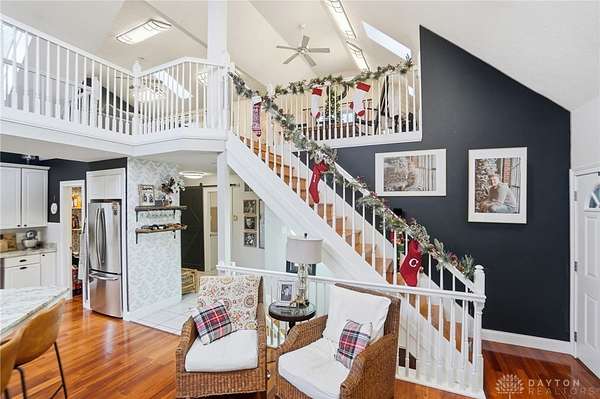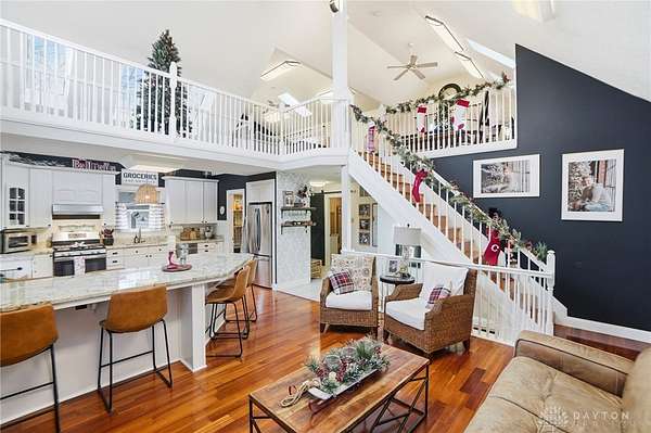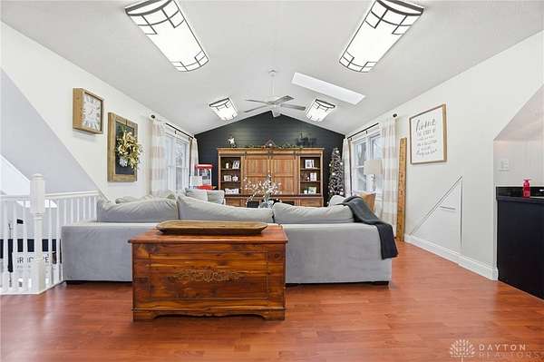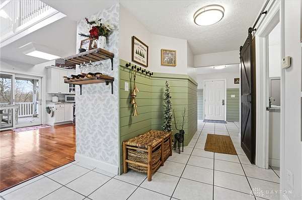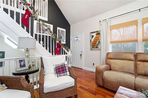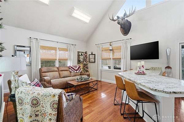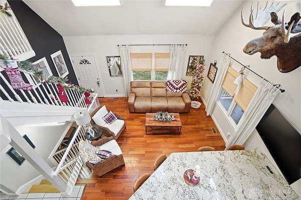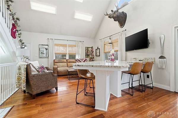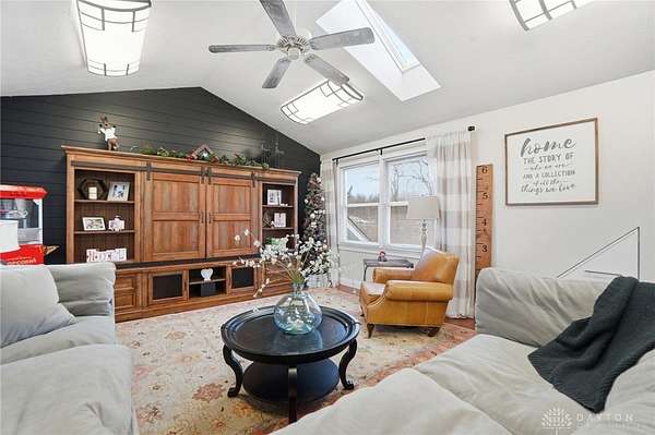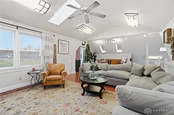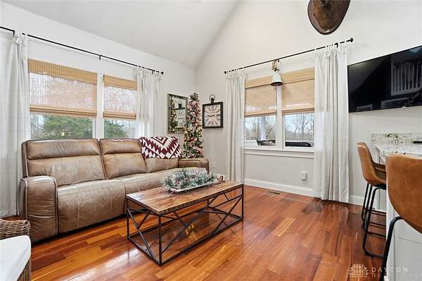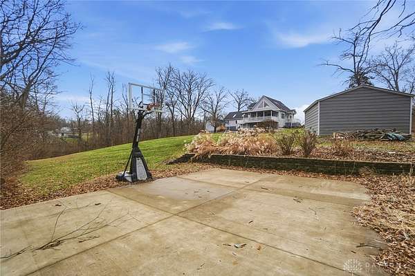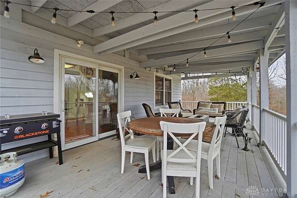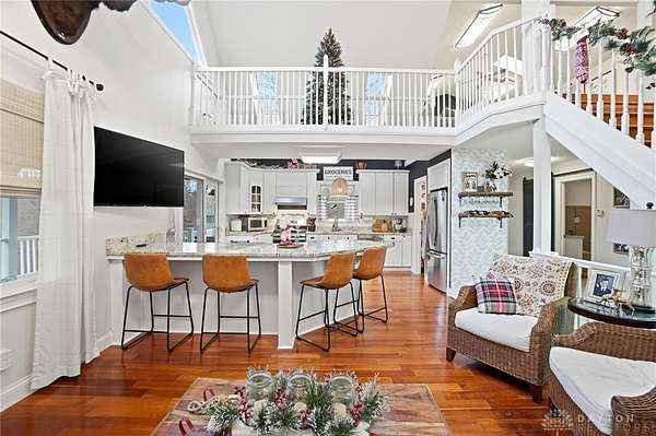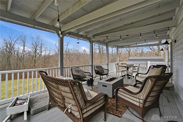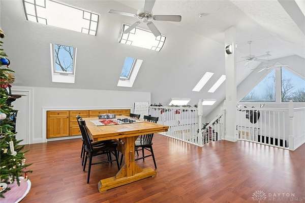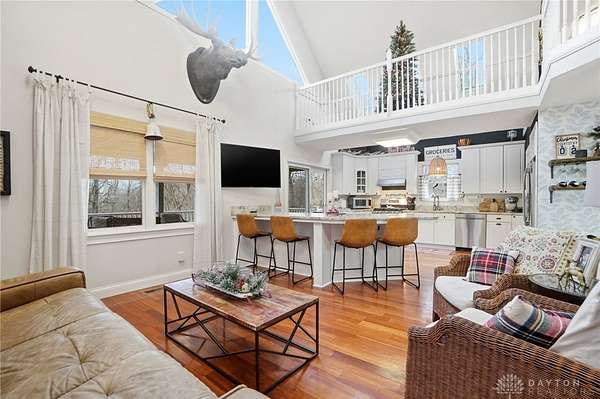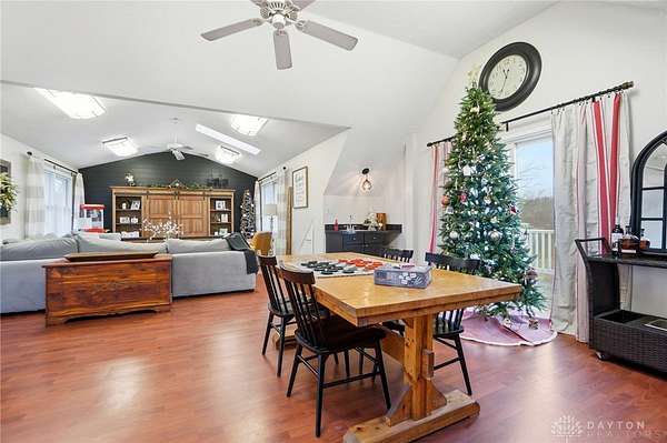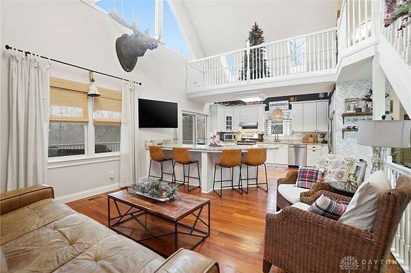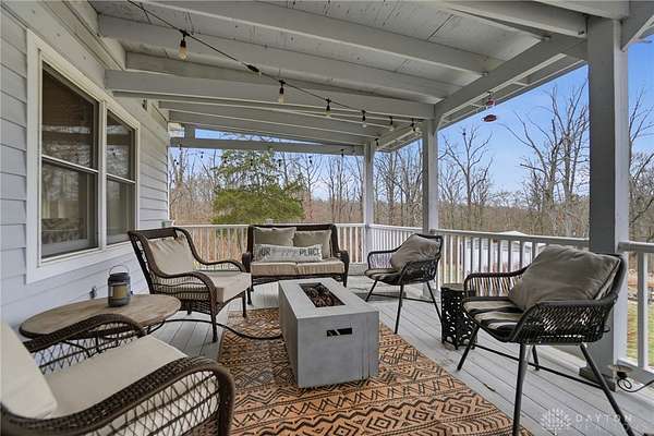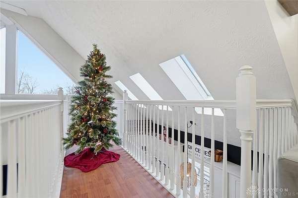 Picturesque, private country retreat on 4.7 stunning acres w/ panoramic views in every direction, this custom-built home offers an incredible blend of comfort, quality construction & inspiring natural surroundings. Featuring 3 bedrooms w/ a possible 4th, 2 full baths & a full finished walkout basement, this thoughtfully designed property showcases solid American cherry hardwood & tile floors, a beautifully remodeled kitchen w/ newer granite countertops, skylights, a large island, walk-in pantry w/ coffee bar & access to the covered deck. The great room impresses with cathedral ceilings, skylights and custom windows, while the open loft with catwalk overlooks the main level for added drama and flexible living space. The main-level owner's suite includes a remodeled bath with tile shower, double vanities and direct access to the deck. The second floor has a large family room and a gathering room, which is perfect for games and gathering with loved ones. The finished walkout lower level offers 2 additional bedrooms (possible 3 - 3rd being used as a family room), a full bath, a small office/art studio and large utility room. The basement has fantastic views of the private rear grounds. Outdoor living is exceptional with approx. 800 sq ft of covered porch & deck space plus 450 sq ft of open wrap aroybd deck space--perfect for relaxing, entertaining & enjoying peaceful country sunsets. Additional highlights include a 3.5-car attached garage, scenic pond, large concrete basketball court, 3 versatile outbuildings including a barn with concrete floor, an electric-ready shed ideal for an art studio, workshop or home office, & a shed at the front of the property great for storage. Located in Franklin Township with no city tax, just minutes to I-75, Austin Landing & convenient commuter access to both Cincinnati & Dayton, this rare property offers character w/ open-concept living, abundant flexible spaces for hobbies, office, exercise or game rooms & a one-of-a-kind setting!