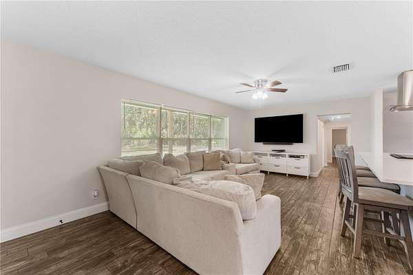A homesteader's and horse lovers paradise! Tucked away on 5 acres of beautiful Florida land and located in rural Lithia is where you find this amazing property. This 3-bedroom, 2-bath home is immaculate, move in ready and has been updated with no detail missed. The open floor plan of the home feels spacious and offers a wonderful space for entertaining. The incredible kitchen is open to the living areas, has been newly renovated and boasts of NEW cabinets, NEW QUARTZ countertops, NEW flooring, NEW appliances, TONS of counterspace, breakfast bar and the list goes on! This is truly a dream kitchen! The kitchen has a large above sink window that offers a view to the back yard and double French doors in the dining area that allow for the sunshine to flood the space with light. The large primary bedroom offers the space you want to relax after a long day and two ceiling fans in the space that keep you cool and comfortable. The primary bathroom is AMAZING! Fully renovated with designer accents, this bathroom gives you all the "spa" feels. The secondary bedrooms offer all the space you need for family or guests and the split floor plan allows for everyone to have privacy and a little retreat of their own. The secondary bathroom has also been beautifully renovated with a designer's touch! Stepping through the double French doors and out to the large oversized and screened lanai, you will find the perfect space to enjoy those amazing Florida mornings, beautiful summer nights or a backyard BBQ with family and friends. Two ceiling fans and towering oaks keep this space cool and enjoyable year-round. This unbelievable property is fully fenced and the land is zoned for agricultural use and commercial farming! This home features many upgrades that put it over the top! A NEW Roof, NEW A/C, NEW water heater, NEW windows, NEW Flooring, NEW well-pump, NEW pavers and lanai screen and more!