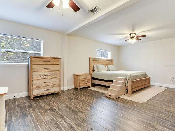 Step outside to the beautifully designed screened-in back porch, complete with pavers and ceiling fans—an ideal spot to relax and take in the serene views of your property year-round.