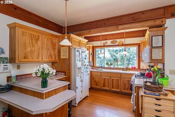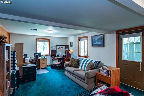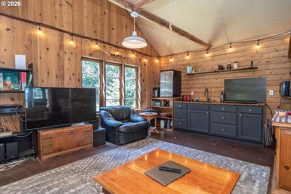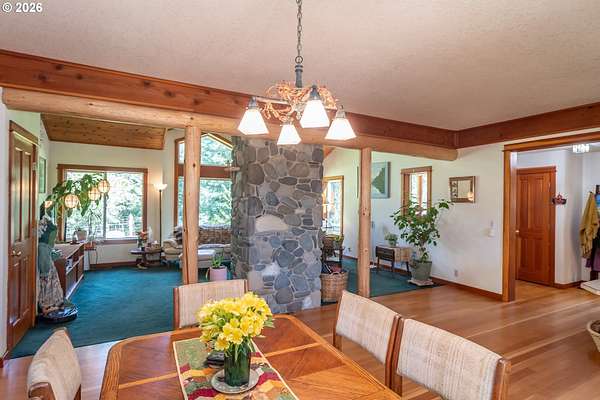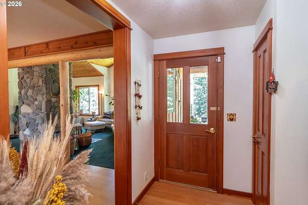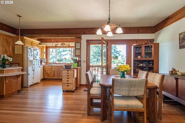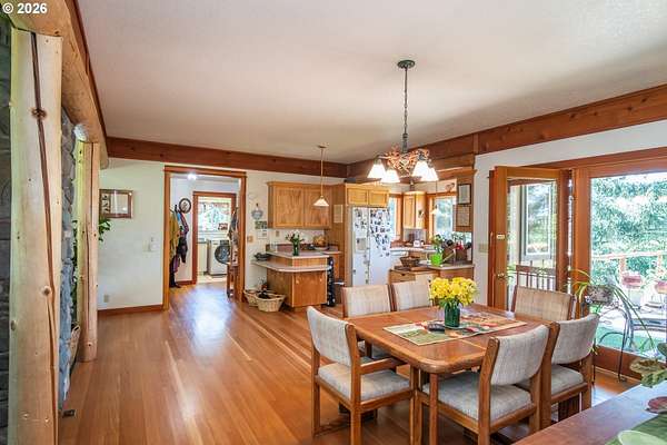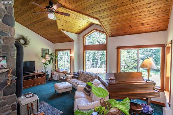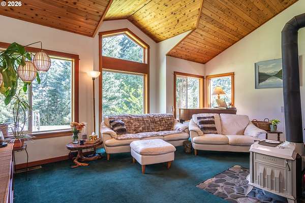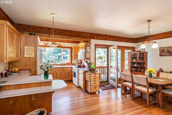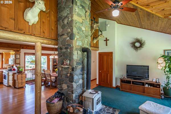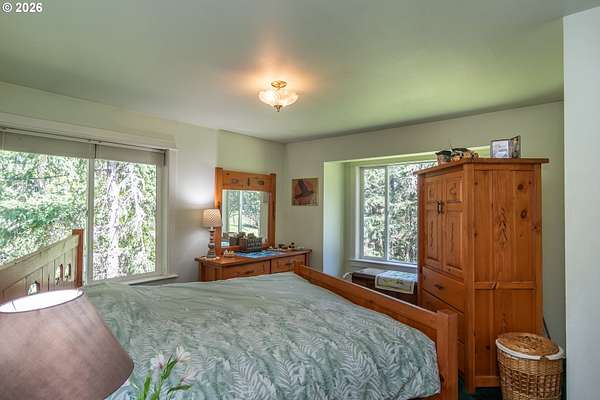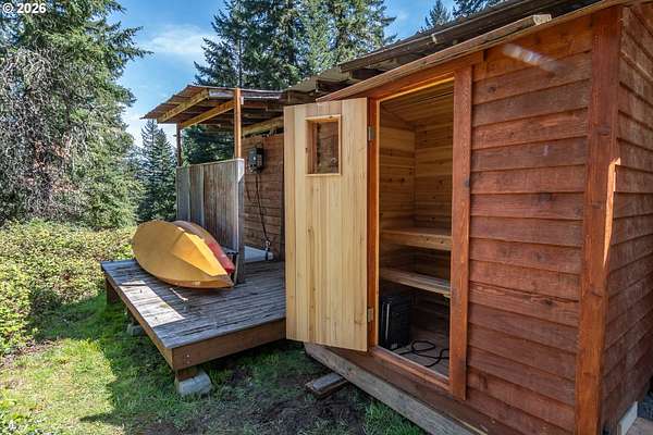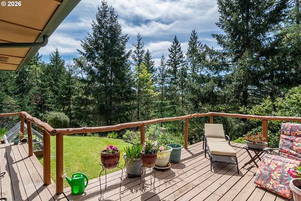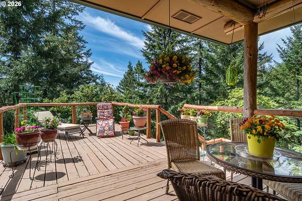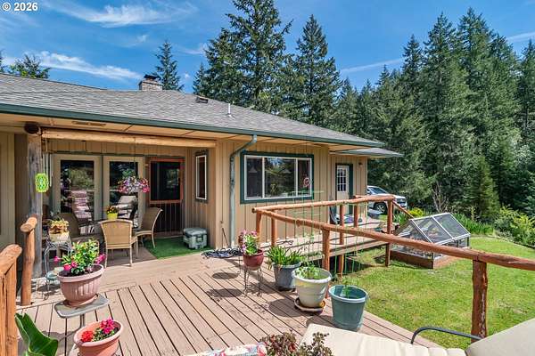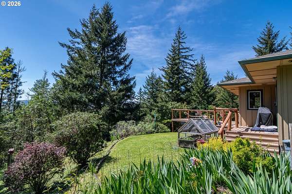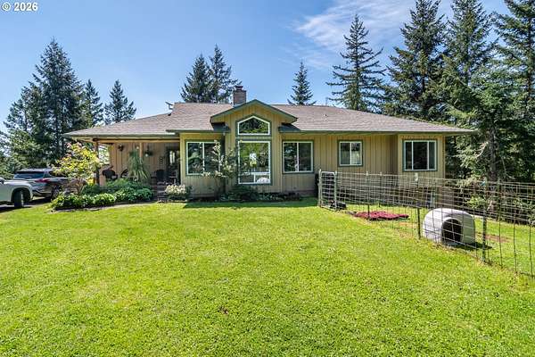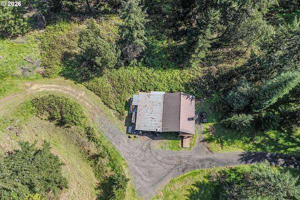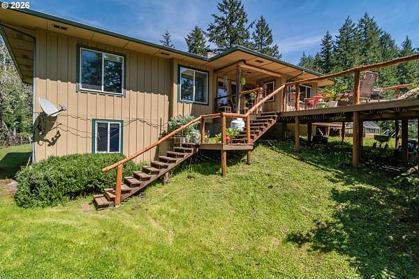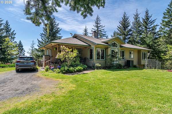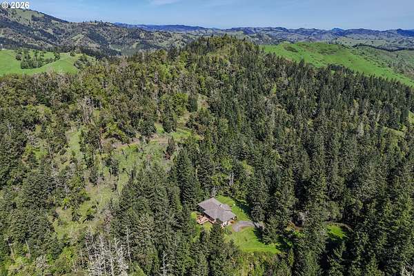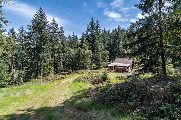 Rare opportunity to own 133 acres of private, forested Oregon land with two homes, valuable timber, and abundant wildlife. This secluded retreat features approximately 577 MBF of merchantable timber, plus 10,000 replanted trees (approx. 2 years old)-ideal for investment, recreation, or a legacy estate. The custom-built 1996 main home blends craftsmanship with natural beauty. Highlights include hardwood floors milled from the property, a stunning floor-to-ceiling Umpqua river rock fireplace (stones hand-carried from the river), and dramatic vaulted knotty pine tongue-and-groove ceilings. The living room is filled with light from large windows showcasing serene forest views. The home offers 3 bedrooms and 2.5 baths, plus a downstairs family room with separate entry-perfect as a 4th bedroom, guest suite, or home office. Enjoy outdoor living on the wood deck off the dining room, ideal for taking in the peaceful surroundings. The charming covered porch entry is accented by Daphne, Iris, and Hellebore, creating a warm welcome. Raised garden beds provide space for herbs and vegetables. A separate 560 sqft guest quarters, located approximately 1/8 mile from the main home, offers excellent privacy. Features include an entry ramp, bathroom with walk-in shower, laundry hookups, carport, outdoor shower, cedar sauna, and metal roof-ideal for guests, rental income, or multi-generational living. The property includes a partially fenced pasture with animal lean-to (previously home to horses and llamas), two wells plus an available spring, and an in-ground concrete water storage tank (2,000 gallons). Wildlife is abundant, including deer, elk, and bear, with 3 landowner hunting tags available. This is a premier Oregon acreage property offering timber investment potential, privacy, natural beauty, and recreational opportunities. A true must-see for those seeking a rural retreat, hunting property, or multi-home estate. PLEASE NO DRIVE-BY'S! APPOINTMENT ONLY.