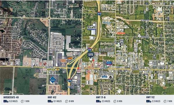 From I-49 Exit 72 (Sunset Ave / US-412):