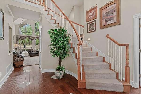 Nestled among mature trees on a beautifully landscaped, oversized 4 acre lot, this stunning brick home offers the perfect blend of privacy, elegance, and everyday comfort. From the moment you arrive, the winding drive and serene, park-like setting create a warm and inviting first impression.