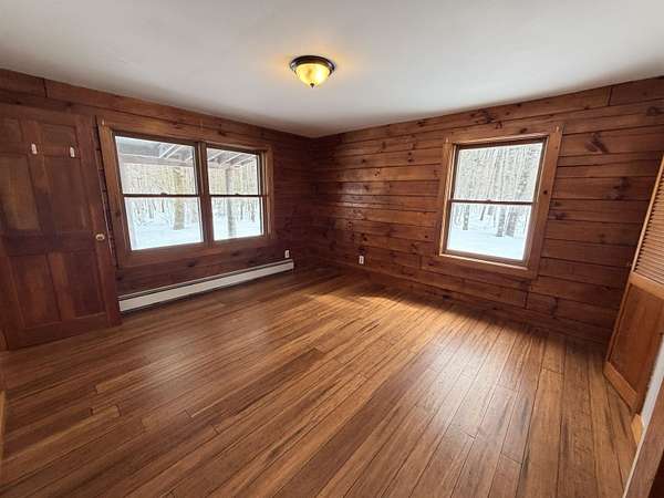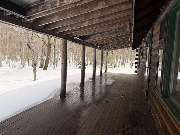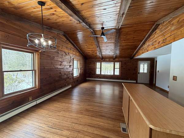 If you've been looking for an authentic New England log home surrounded by nature, this property delivers the charm, privacy, and character many buyers are searching for. Set on 2.64 wooded acres in Farmington, this classic log home offers a peaceful country setting while remaining conveniently located to nearby routes and amenities. Built in 1987, the home features 3 bedrooms and 1 full bath with approximately 1,232 sq ft of main-level living space, offering a comfortable and efficient layout. Inside, the home showcases warm wood finishes throughout, including wood plank walls, exposed beams, and vaulted ceilings that create an inviting rustic atmosphere. The spacious living area is filled with natural light and flows easily toward the kitchen and dining space, making the home well suited for both everyday living and gatherings. The kitchen offers solid wood cabinetry, generous counter space, and a practical layout overlooking the backyard. Bedrooms continue the cozy log home feel with wood accents and views of the surrounding trees. Outdoor spaces truly set this property apart. Enjoy the peaceful setting from the expansive covered porch, perfect for relaxing and taking in the natural surroundings, or step onto the side deck for grilling and entertaining during the warmer months. Additional features include a 10x12 storage shed, paved driveway, and private water and septic systems. The wooded lot provides privacy and space to explore, garden, or simply enjoy the quiet setting. Whether you're looking for a primary residence, weekend retreat, or a home with true rustic character, this Farmington log home offers a unique opportunity to enjoy country living in a natural setting. *Open House Saturday (03/14) from 12-2 pm* *Offer Deadline Monday (03/16) at 6:00 pm*