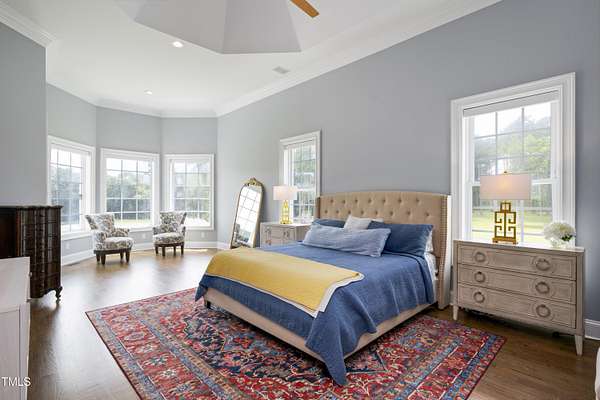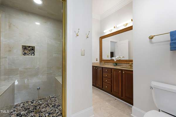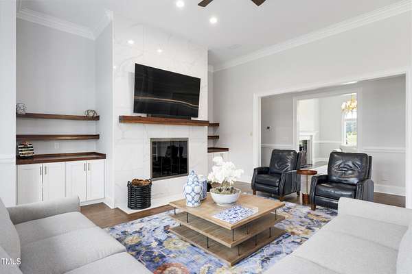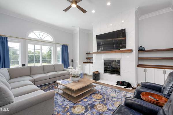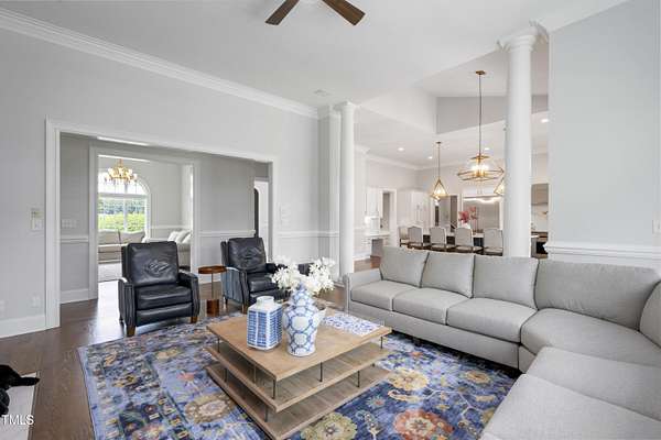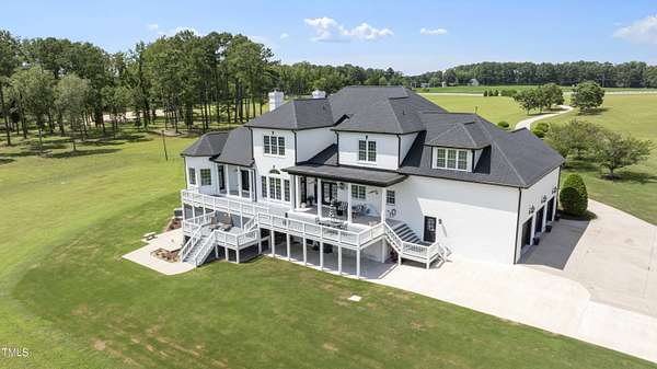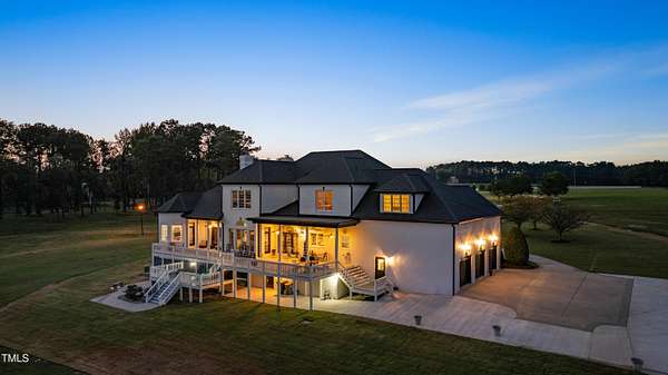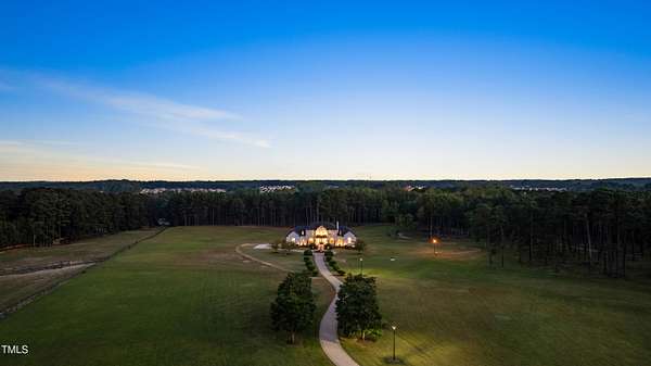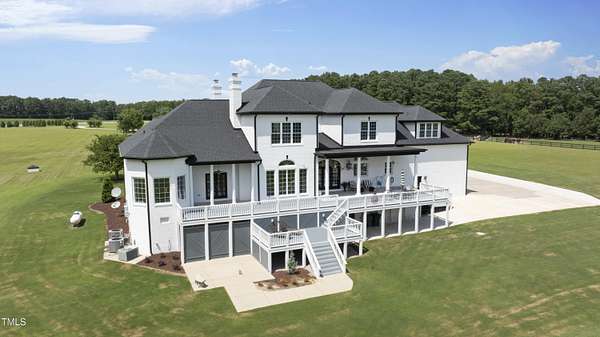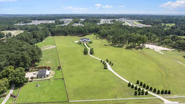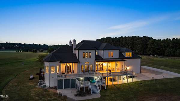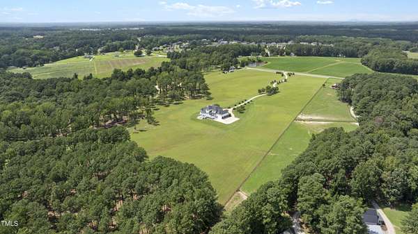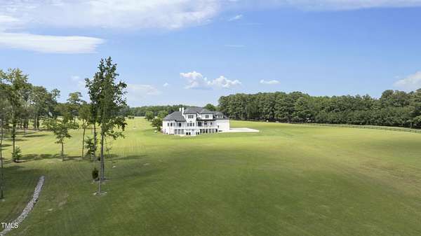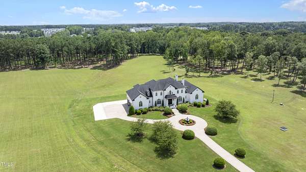 This exceptional country estate features a fabulous, completely renovated 6,200 sq. ft. home situated on nearly 30 acres, less than 30 minutes from downtown Raleigh! Enter through the custom-crafted iron and glass entry doors by Clark-Hall to the welcoming grand foyer featuring new tile floors, circular staircase and soaring ceiling! Renovated chef's kitchen with quartz counters, backsplash, and massive center island, features commercial grade stainless steel Monogram appliances. You'll enjoy the delightful family room with custom fireplace and built-ins, and a wall of windows overlooking the expansive covered porch and the fields and woods beyond! The main floor includes a luxe primary suite with all new spa-bath, wood-paneled office/den, formal dining, living room with fireplace, butler's pantry and huge laundry room. Upstairs you'll find three bedrooms, all with private bath, an office, and large bonus room with wet bar, vaulted ceiling, and half bath. Gleaming site-finished hardwood floors throughout most of the home. Oversized, attached 3-car garage with epoxy floors, an unfinished basement and nearly 700 sq. ft. of walk-in storage. Beautifully updated and manicured landscaping completes this tremendous estate. (The adjacent 20-acre parcel including a 2-stall barn with living quarters and 2 garages is also available and listed separately-MLS #10117373.)