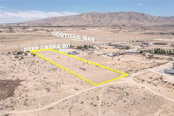 Est $1,836/moImagine the possibilities on this prime approx. 4.5-acre parcel in Apple Valley! Conveniently located along Deep Creek Rd, this spacious, level lot offers a blank canvas ready for your dream home, ranch, or investment project. Surrounded by peaceful desert landscapes and beautiful mountain views, this property combines privacy with easy access to town amenities. Bring your vision and start building your future today--utilities are nearby, and zoning offers flexibility for various uses. Don't miss this opportunity to own a piece land in Apple Valley.