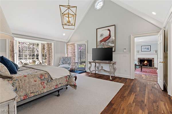 Nestled within 25 acres of meadows and woodland, this private retreat offers a rare blend of architectural sophistication and tranquil seclusion-just minutes from dining, shopping, and parks. Thoughtfully reimagined by its current owners, the home features refined updates and extensive landscaping that highlight its natural setting. Originally built by renowned builder Bruce Thomas as a family sanctuary, the residence exemplifies exceptional craftsmanship and timeless vision. Floor-to-ceiling windows frame sweeping views of two naturally fed, swimmable lakes, bringing the outdoors into nearly every room. At the front, broad vistas of the shared lake greet you; at the rear, serene reflections shimmer across your private water expanse. The newly refreshed kitchen showcases custom cabinetry, quartz surfaces, Miele and Wolfe appliances, dual sinks, and an induction range. It flows into an open dining area, inviting both intimate dinners and lively gatherings. Inside, soaring ceilings, walnut floors, and fireplaces combine comfort with understated luxury. A reimagined mudroom-complete with farm sink, dishwasher, and built-ins-adds practicality near the first-floor laundry. The primary suite is a retreat within itself, with a sitting room and fireplace, three bathrooms, and three walk-in closets. Upstairs, four bedrooms and three full baths provide generous accommodations, with a second laundry for convenience. The finished lower level includes a private office, full bath, and secure storage. A dual-purpose barn anchors the estate: upstairs, an expansive entertainment space; downstairs, functional storage-all in rustic-modern style. Six terraces and patios are strategically placed for sunrises, lakeside moments, and stargazing. With geothermal heating and cooling, architectural integrity, and refined finishes, this property is more than a home-it's a legacy estate that combines luxurious rural living with unmatched proximity to urban convenience.