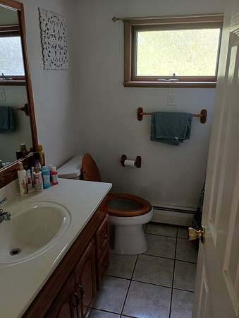 Est $1,093/moMOTIVATED SELLER... Committed to move. This is a beautiful well maintained house can be your new home. 3 bedroom/2 bath has a covered front porch and a relaxing back deck. There is a new hot water tank, Heated by hot water baseboard, very efficient. There is an outside exit from the basement. Wallpaper/paint and carpeting all in good taste and condition. Tile and hardwood floors throughout. Window fixtures throughout will remain.